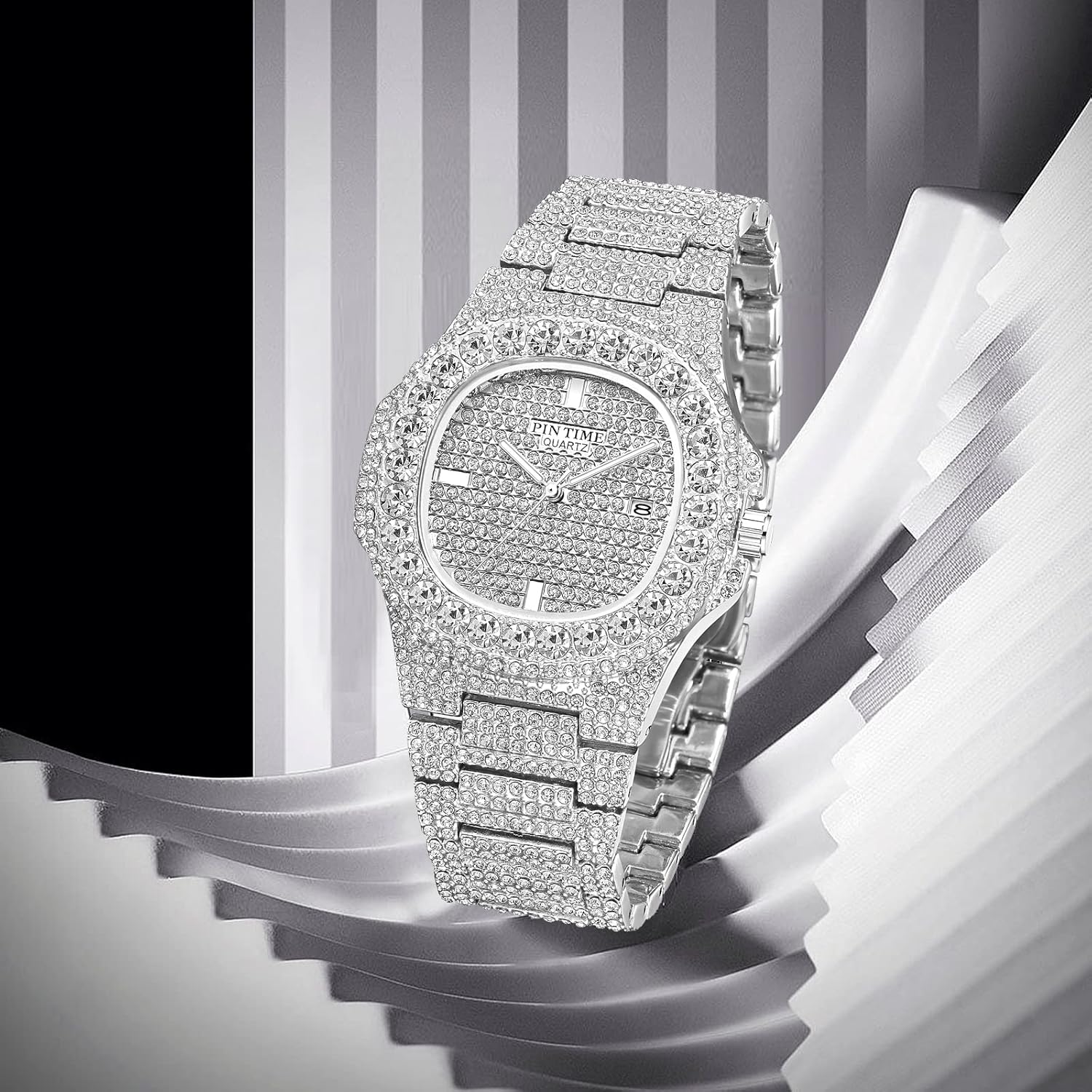 【 Attractive Appearance 】: This watch features a sparkling crystal diamond shaped rhinestone, showcasing an overall luxurious temperament. The watch ring is adorned with 28 crystal diamonds and numerous crystal clear rhinestones, shimmering with charming light, making it impossible to take one's gaze away.