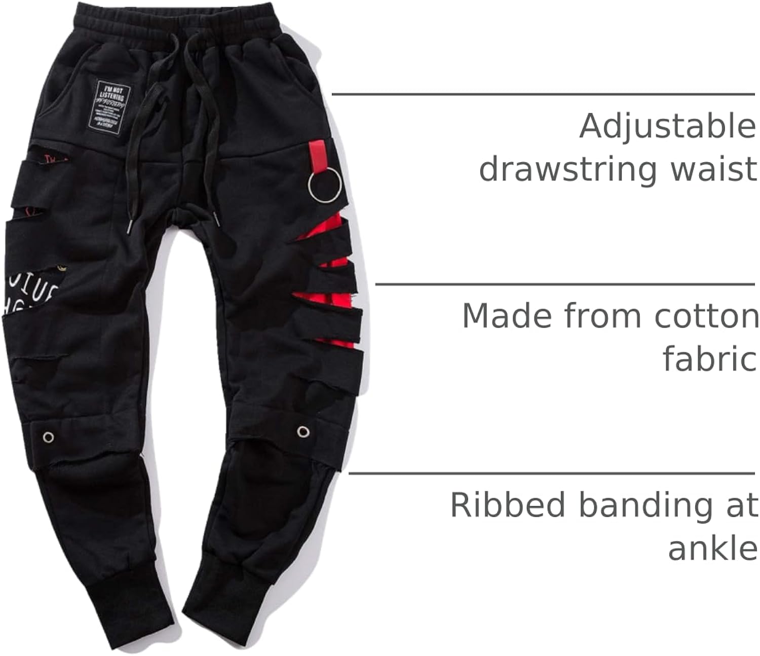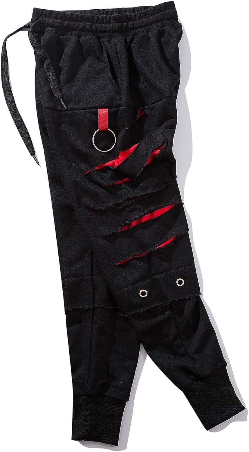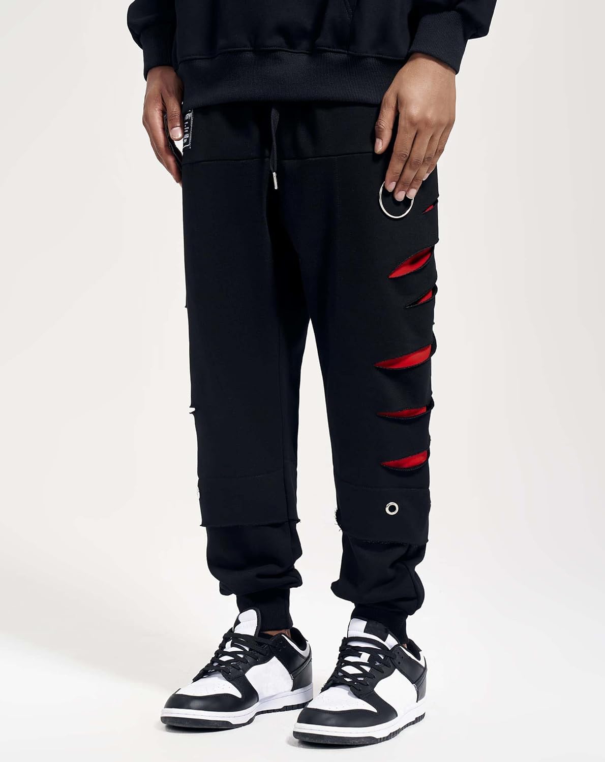 Ripped sides with red slashes for streetwear look