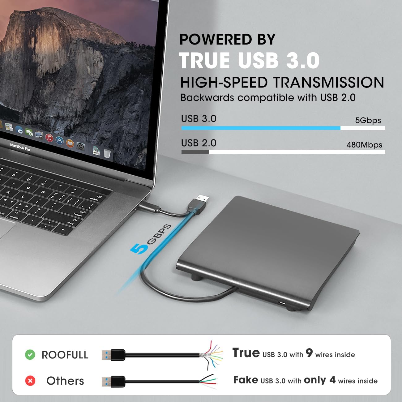 【Excellent Performance】As a professional manufacturer with 10 years of experience dedicated to producing reliable-quality external CD/DVD drives. Each ROOFULL USB CD/DVD drive is equipped with a 100% brand-new movement that features strong error-correcting, low impedance, and anti-interference ability, guaranteeing stable, quiet, and smooth operation. In addition, all CD DVD players will undergo strict testing before shipment to ensure the best condition. If the drive you receive does not work for any reason, just reach out to us for tech support or free replacement. (We offer up to 2 years of comprehensive after-sales, ensuring your satisfaction and peace of mind)