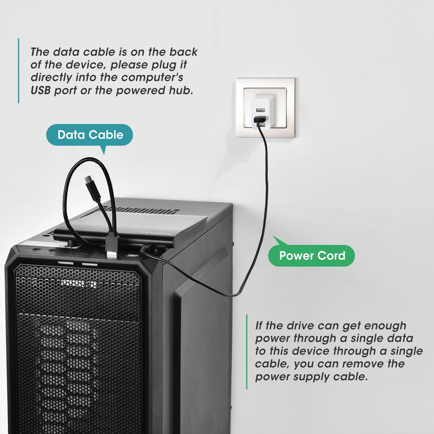 【Longer Data Cable & Separate Power Cord】Featuring USB 3.0 high-speed technology, this USB disk drive achieves data speeds up to 5 Gbps (10 times faster than USB 2.0) and supports maximum read/write speeds of 24x CD and 8x DVD speeds for smooth and efficient performance. Its 16.5-inch detachable data cable, with both USB 3.0 Type-A and Type-C connectors, resolves short cable issues found in most optical drives and enables direct connection to various computers without the need for adapters or hubs. To prevent power shortage, it is recommended to connect the separate power cable to a USB power bank/adapter to ensure sufficient power supply. (Note: The power cord can not be used alone.)