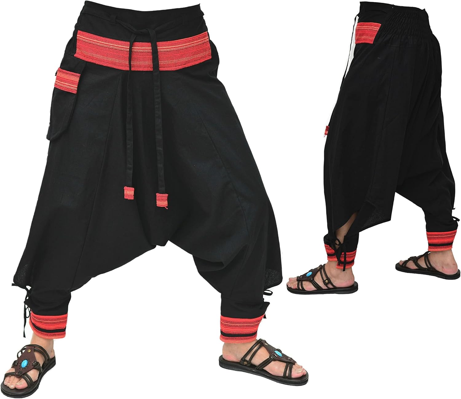 Siamrose Japanese Style Samurai Yoga Ninja Harem Pants Men Women Lounge Trousers, One Size, Elastic Waist