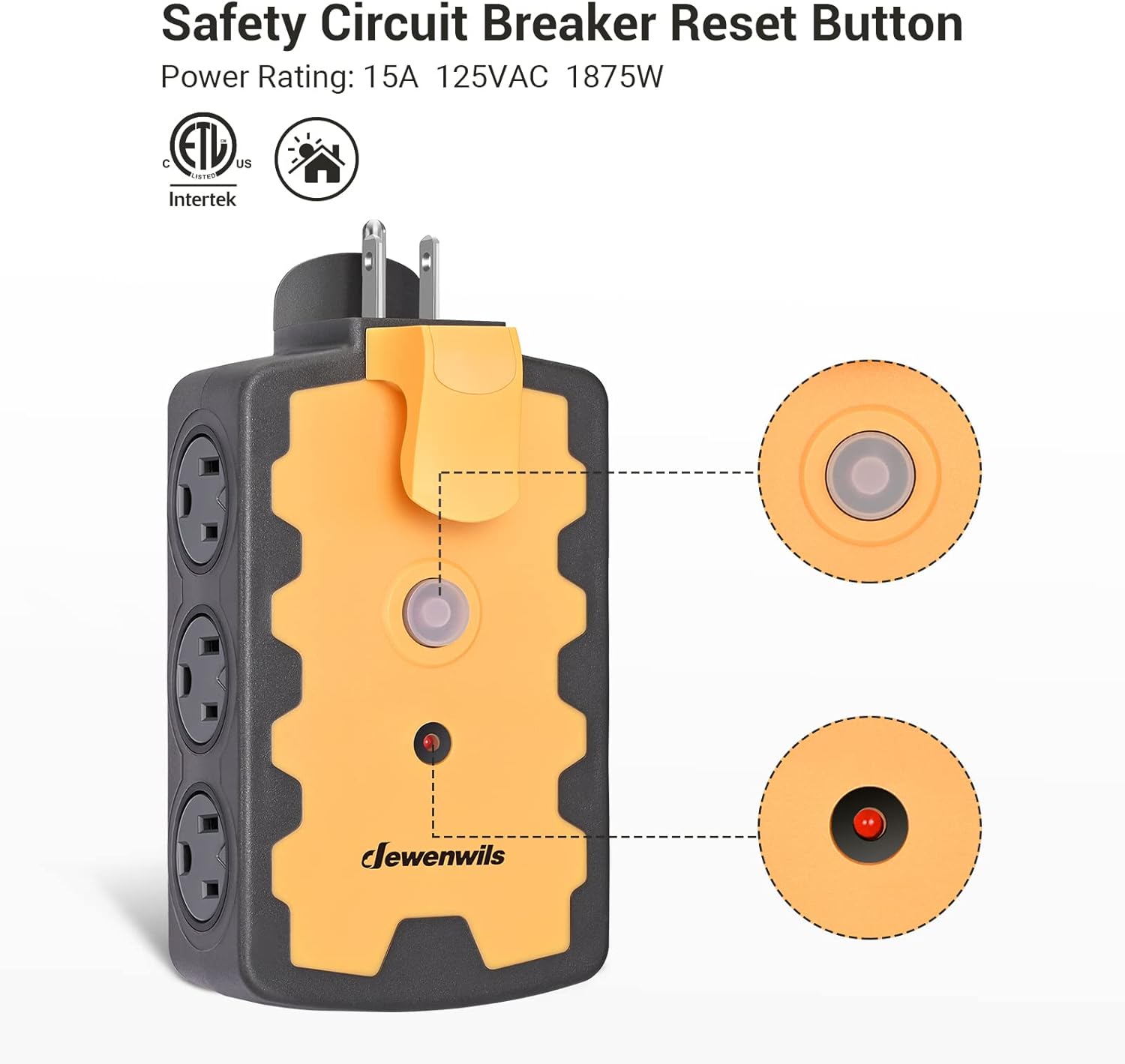 【15A Circuit Breaker】 Built-in 15A circuit breaker protects devices from overload and short circuits, automatically cut off the power supply when the total current of the connected devices exceeds 15A; press the button once the Extend outlet powers off. The red power indicator shows the power strip works properly or not