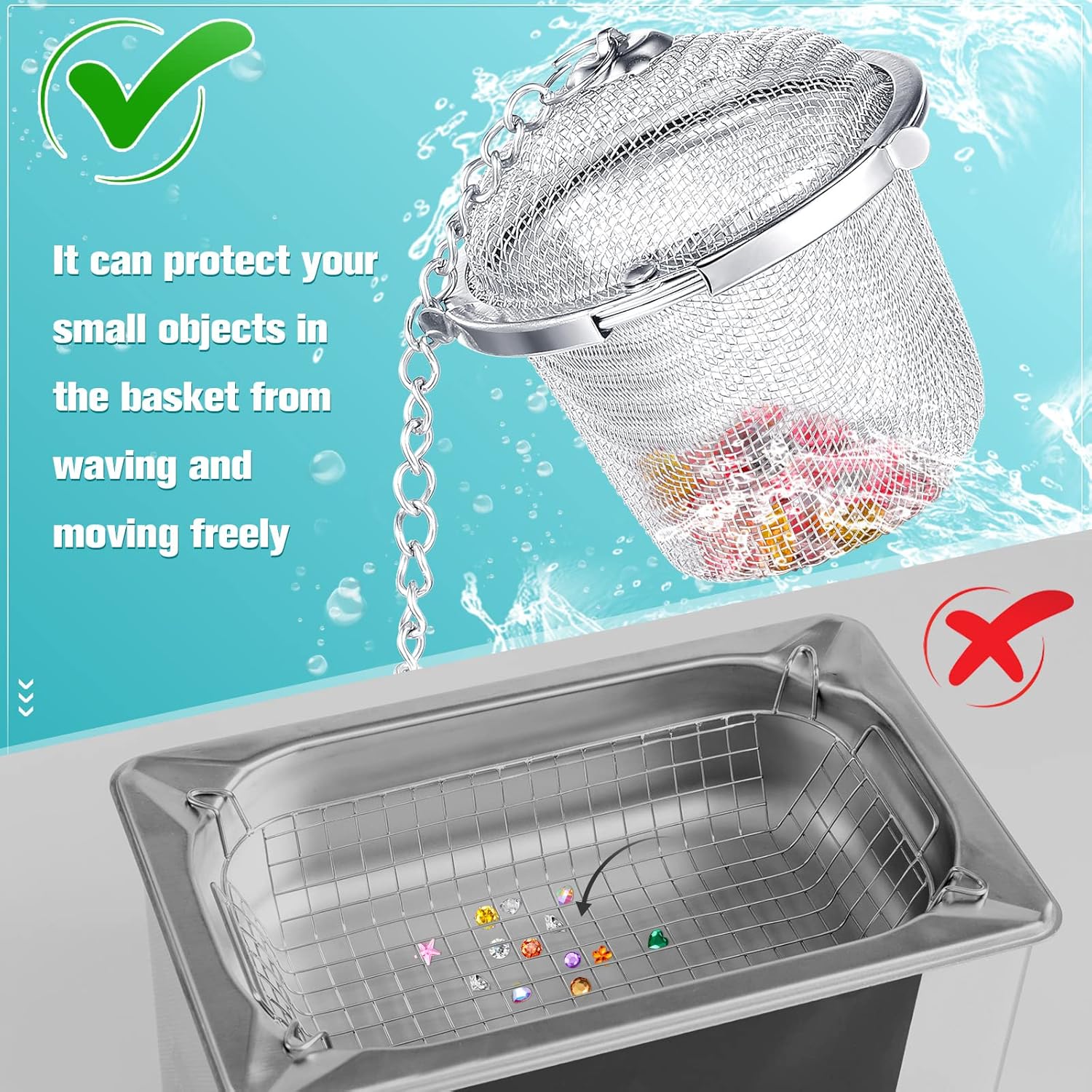 Stable Use: the holder has a safe cover, which can firmly lock the trinkets in the holder to keep them from falling out, turbulence and wear in the ultrasonic machine, and the chain design can well fix and stabilize the basket in one position without moving anywhere, so as to protect the items that need to be cleaned to a greater extent