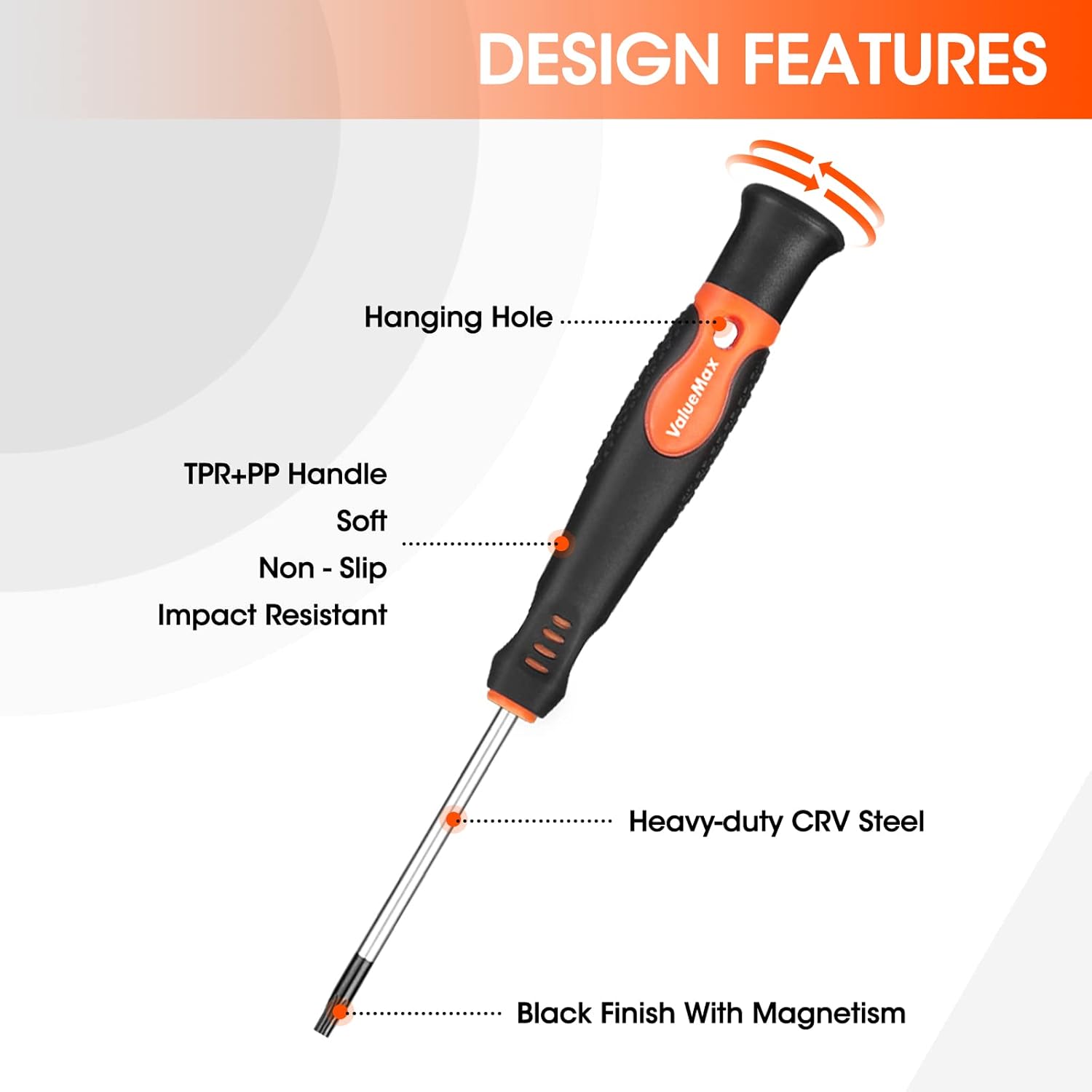 Practical : CR-V steel with heat treatment, polished anti-rust surface for durability. Black finish blade with magnetic tips conveniently attracts screws for efficiency. 2 material Soft Non-slip handle is impact resistant to reduce hand fatigue