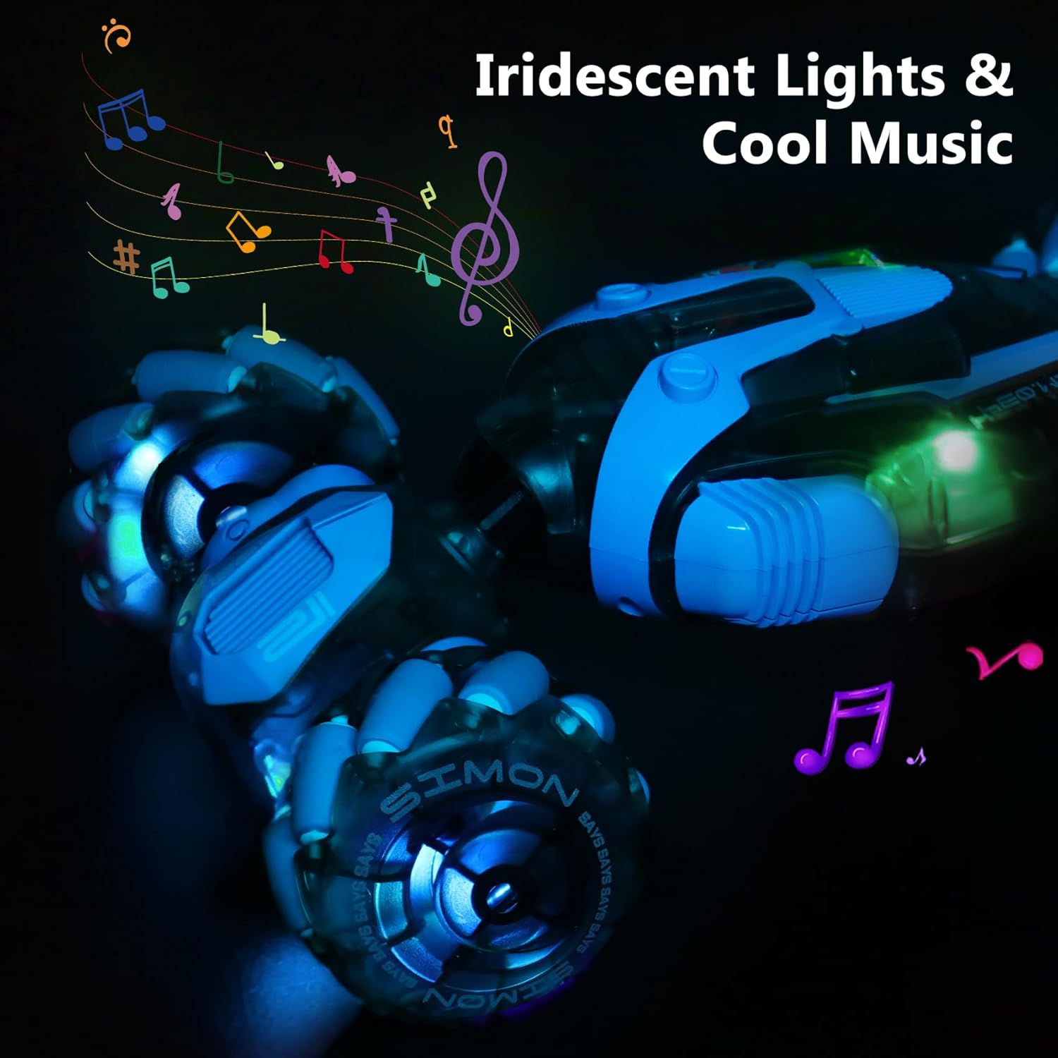 Multiple Control Modes: 2.4GHz handle remote control signal is sensitive, with automatic demonstration stunt function kids can easily get started. The stylish gravity-sensing watch remote control makes playing with RC stunt cars more immersive and fun.