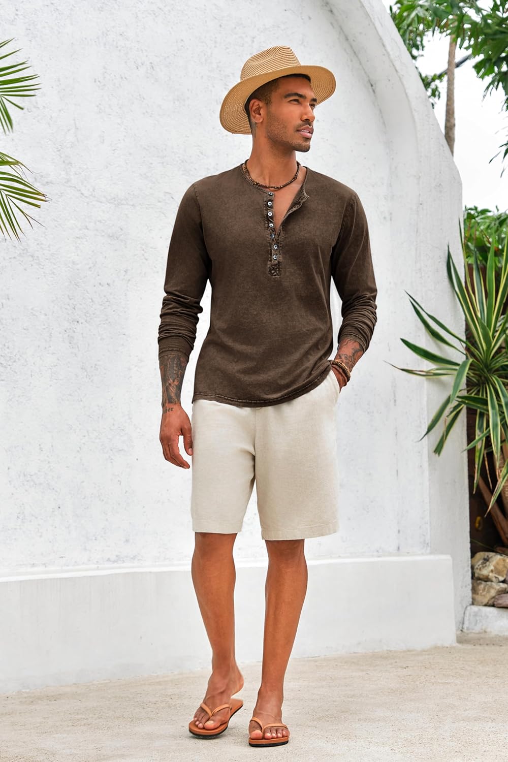 Men's casual button-down shirt looks sharp jeans, shorts or leggings. Great paired with pajama-type pants, flannel pants for lounging around. You can wear in chilly weather with a light jacket, or in warmer weather with the sleeves pulled up.