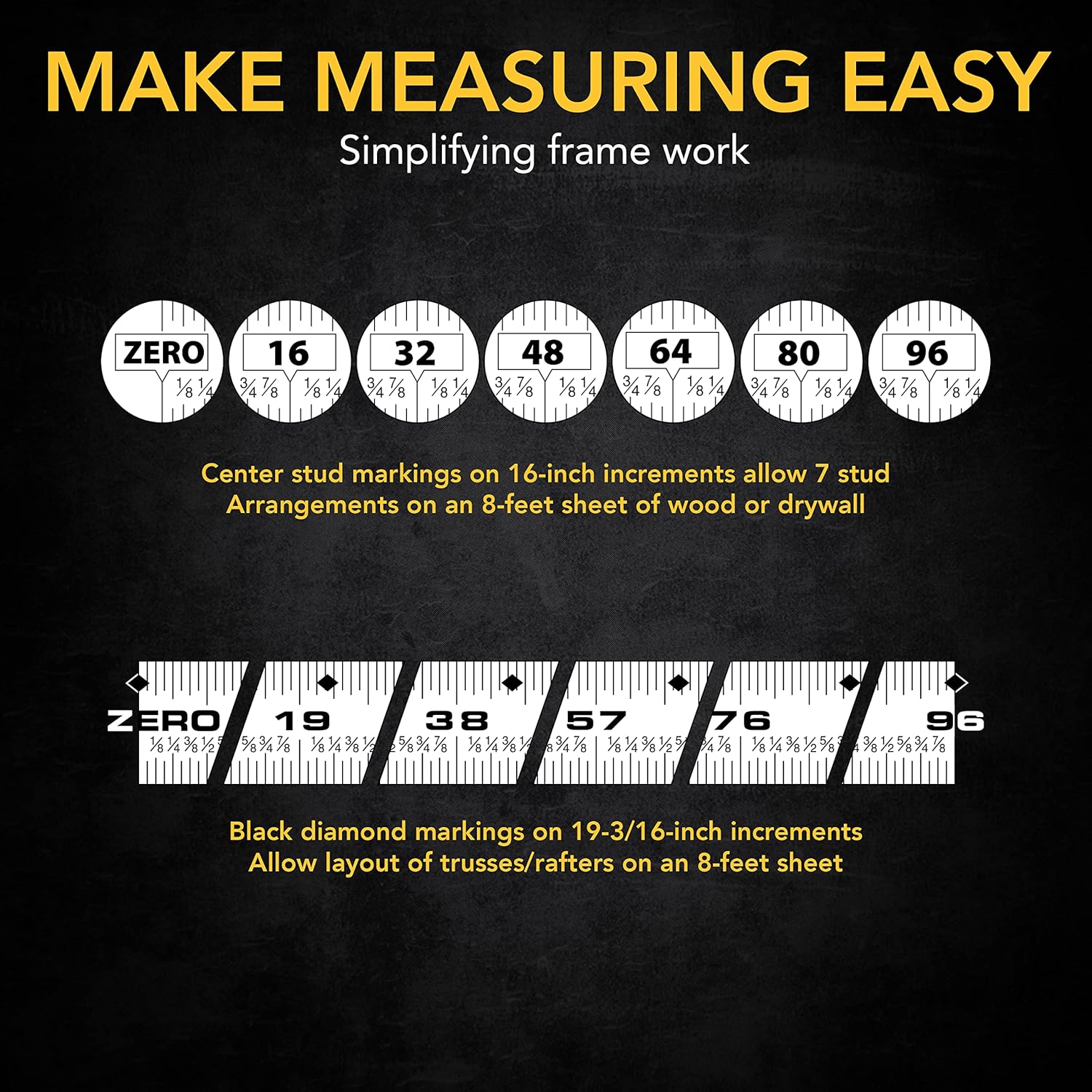 PERFORMANCE - Easy to read fractional graphics, Stud center markings every 16" and 19.2" - Simplify framing jobs