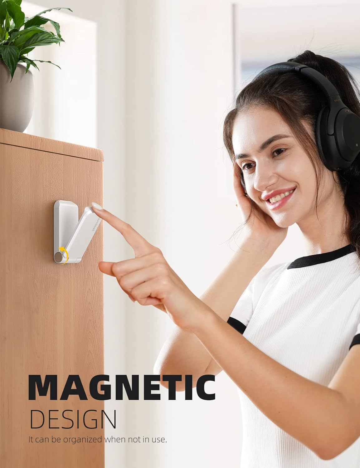 【 Magnetic Design】The headset holder has a magnet so it can be folded up by magnetic force when it is not in use. Great for space-saving. The headphone arm is covered with soft rubber pad to protect your headset from slipping and scratching, and will not damage your headphone.