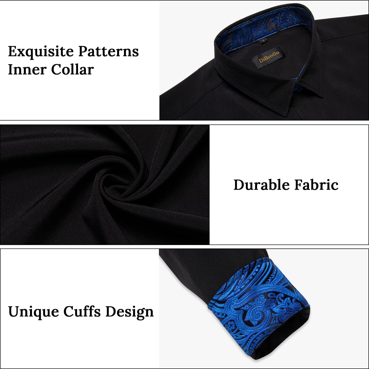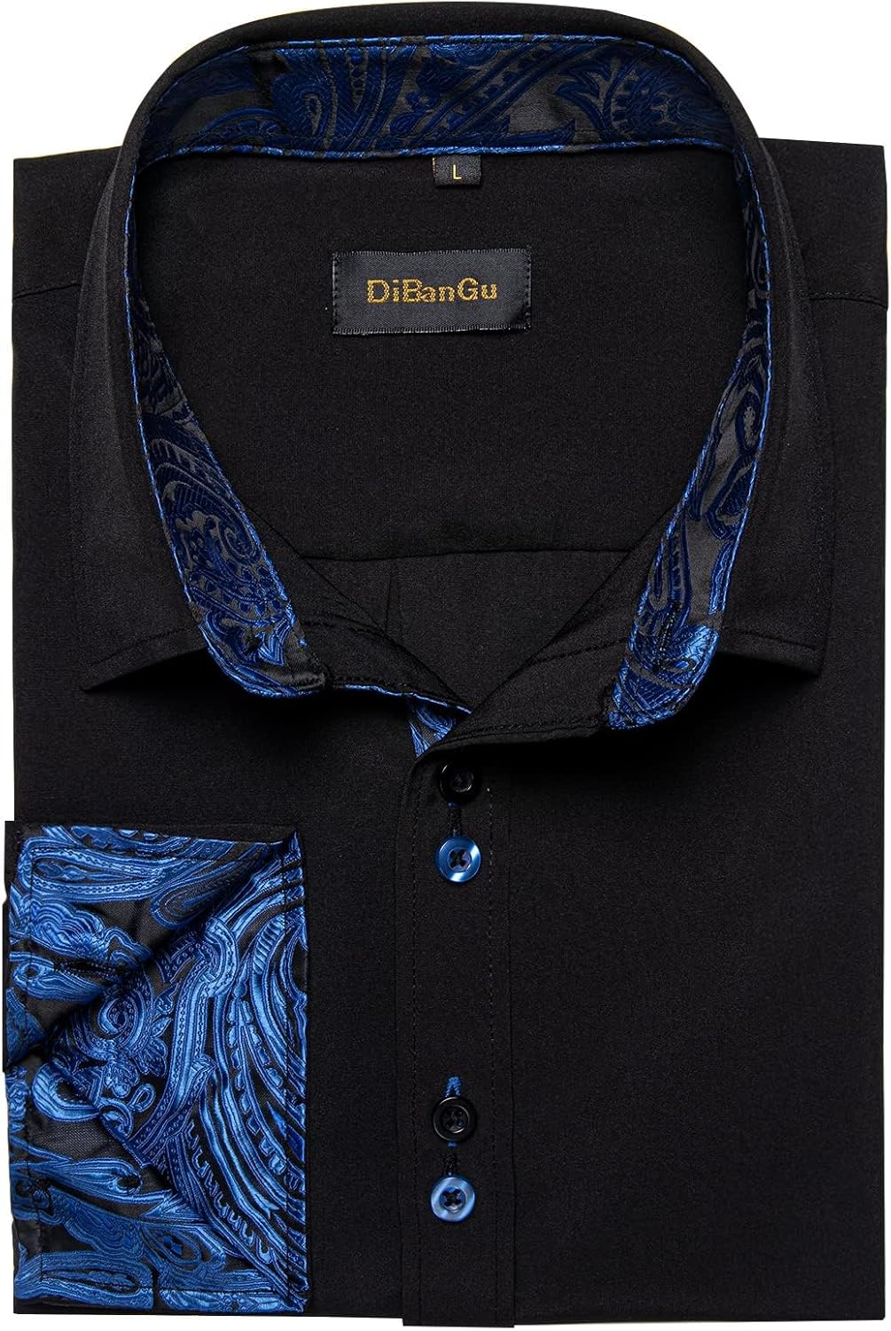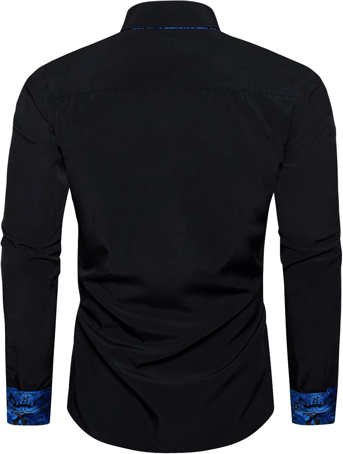 【Trendy Design】 Unique paisley/plaid on collar/cuffs/the front,contrast colored buttons, turn down collar,exquisite tailoring, providing the inner contrast black long sleeve dress shirt fashion and attractive