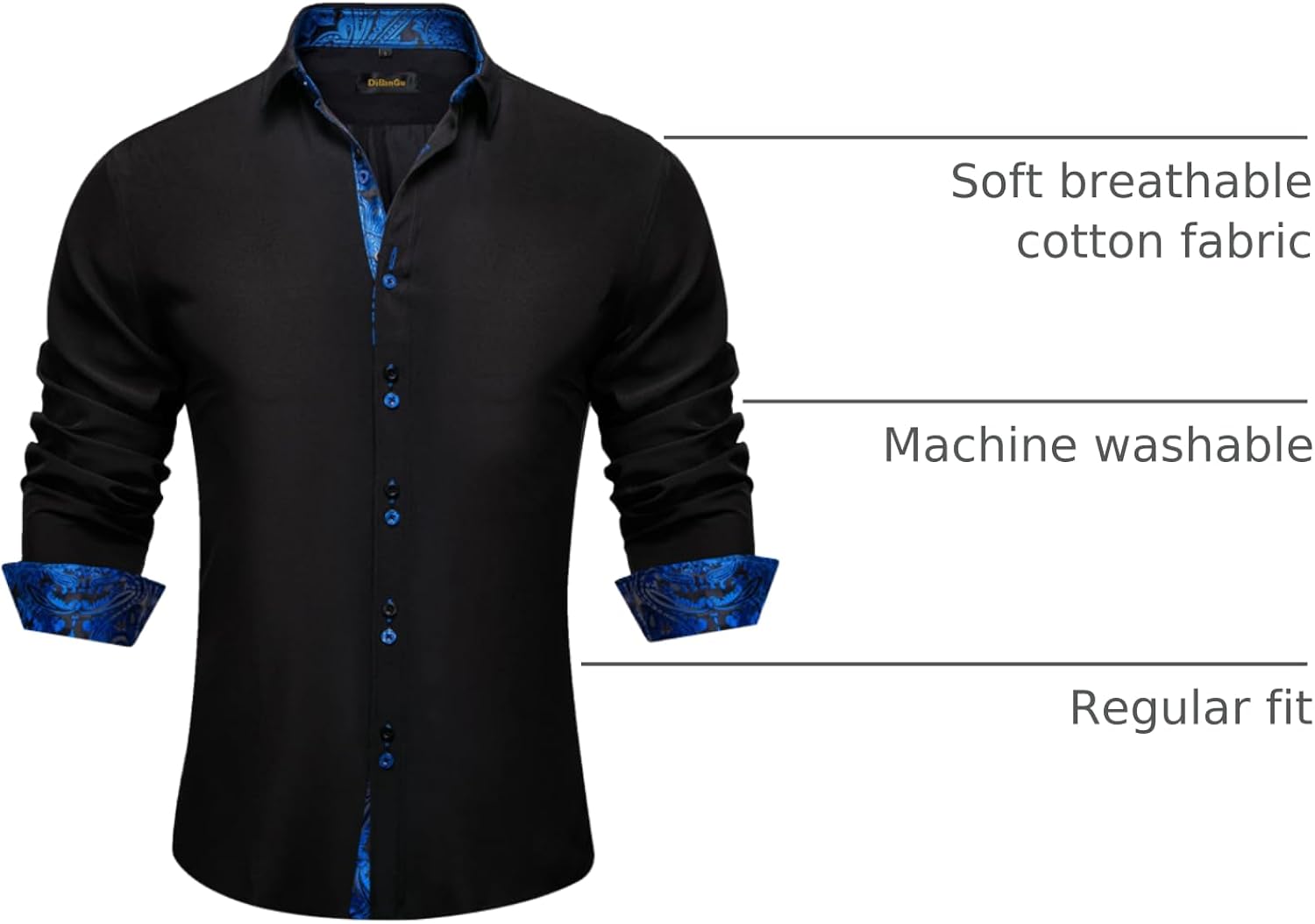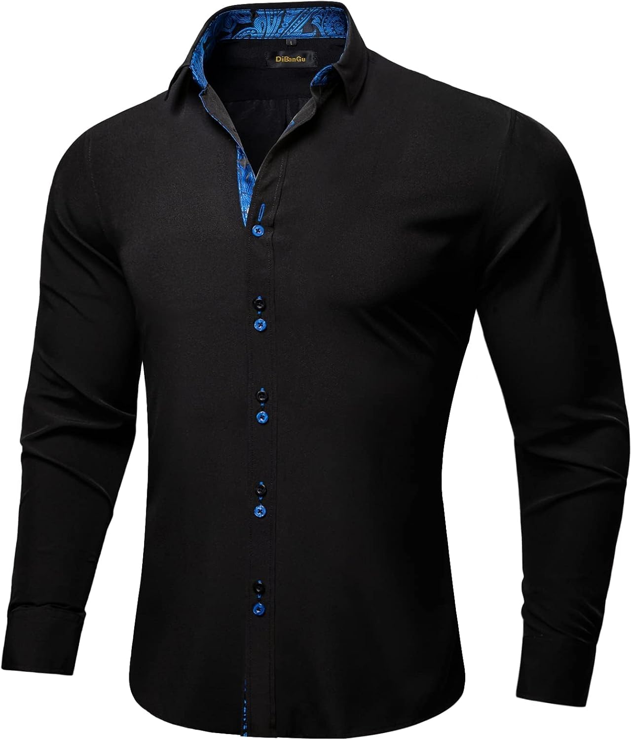 DiBanGu Men's Dress Shirt Long Sleeve Casual Button Down Shirts Regular Fit Inner Contrast Shirt for Business Party
