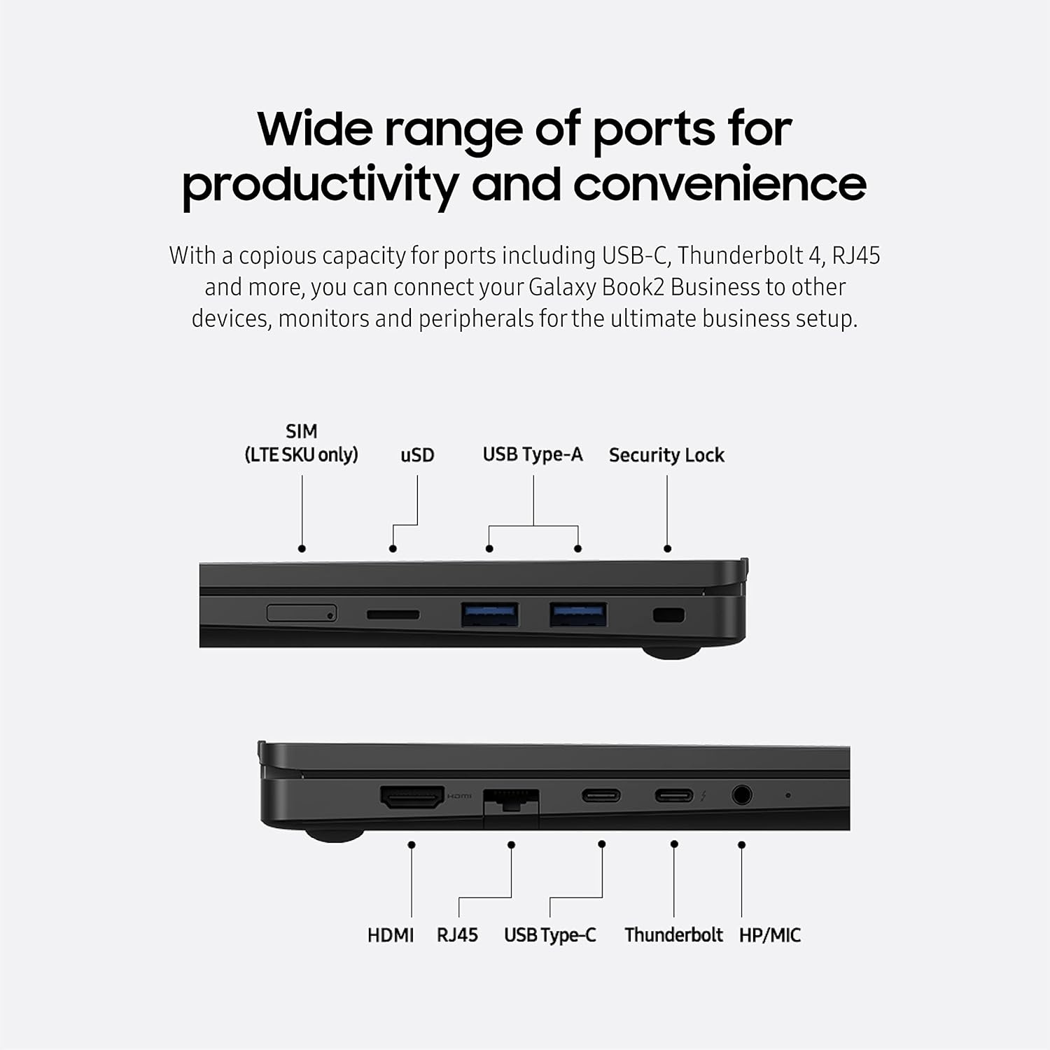 EXPANDABILITY & MANAGEABILITY: Galaxy Book2 Business will grow alongside your business; Enhance your performance, increase your storage, download new driver packs and connect to a wide range of ports no matter which cord is required