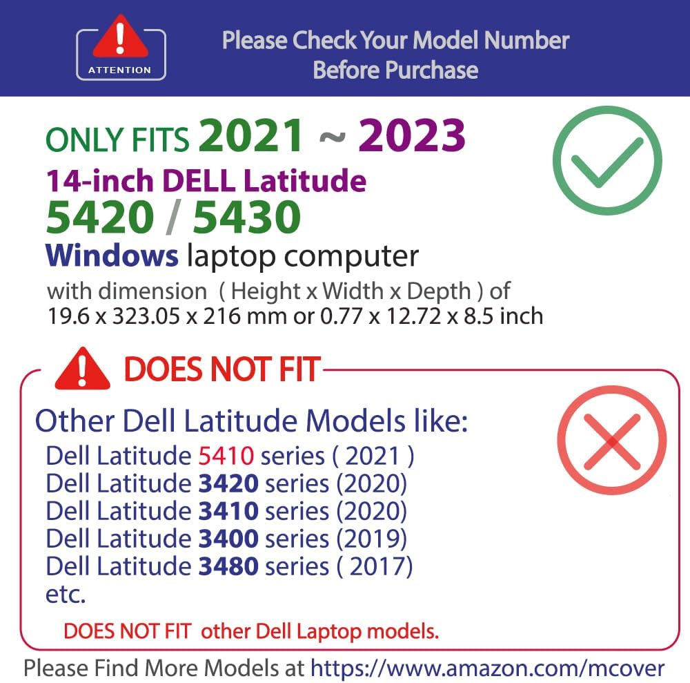 Designed to perfectly fit the 2021~2023 14" Dell Latitude 5420 5430 Windows Laptop with dimension of 12.65 x 8.35 x 0.82 inch ( 321.35 x 212 x 20.9 mm )