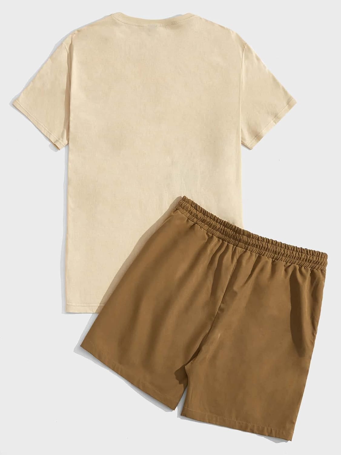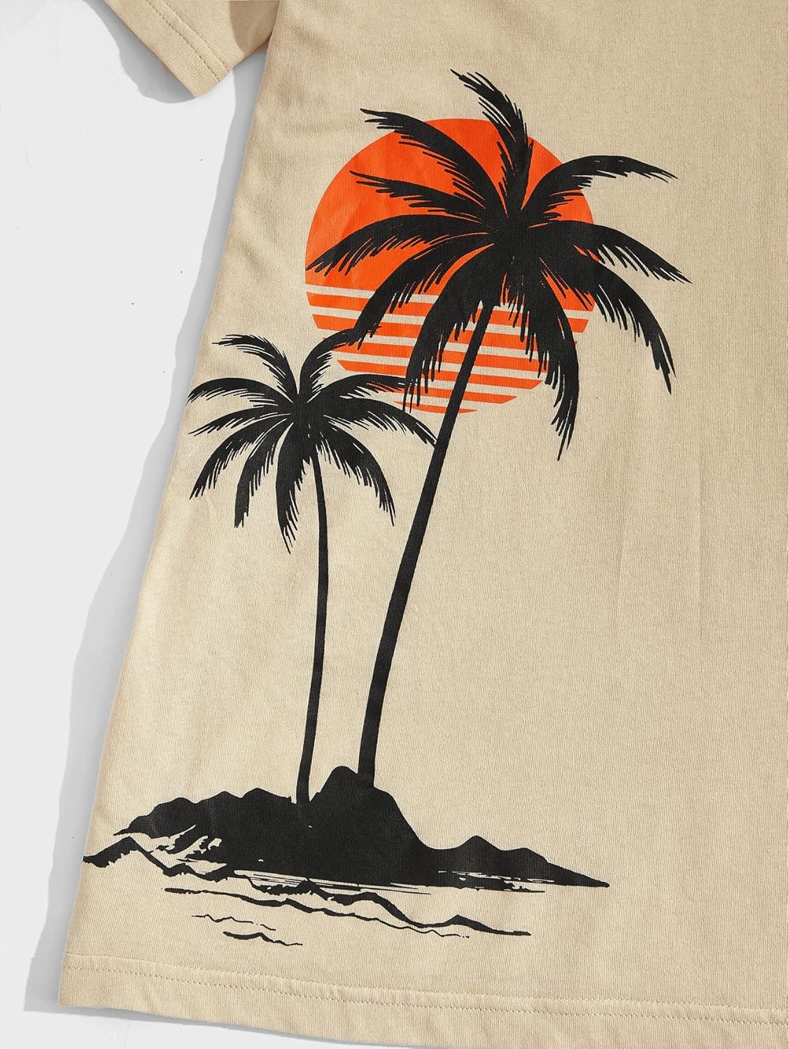 GORGLITTER Men's 2 Piece Outfits Tropical Print Short Sleeve Tee and Drawstring Waist Shorts Set