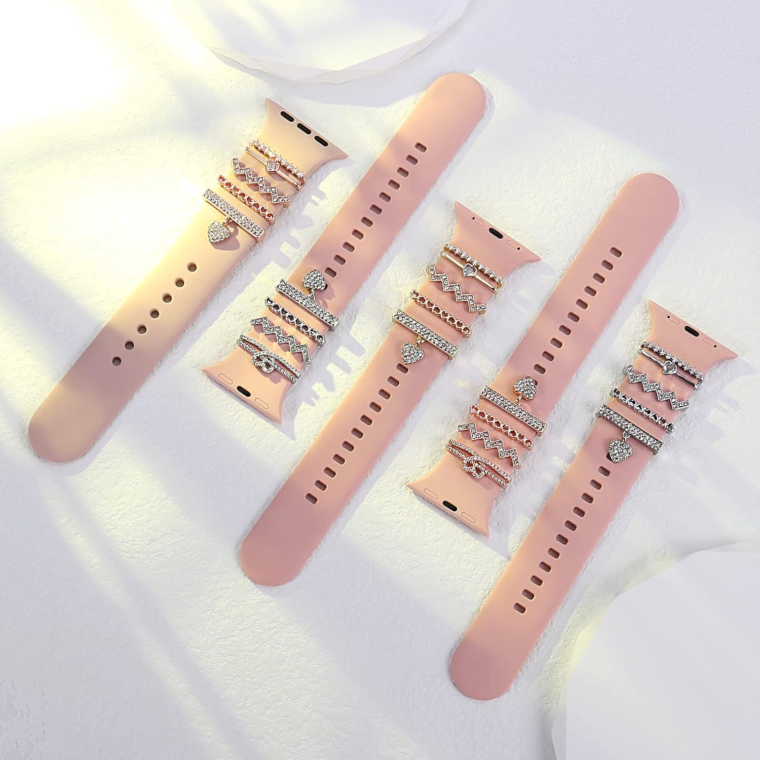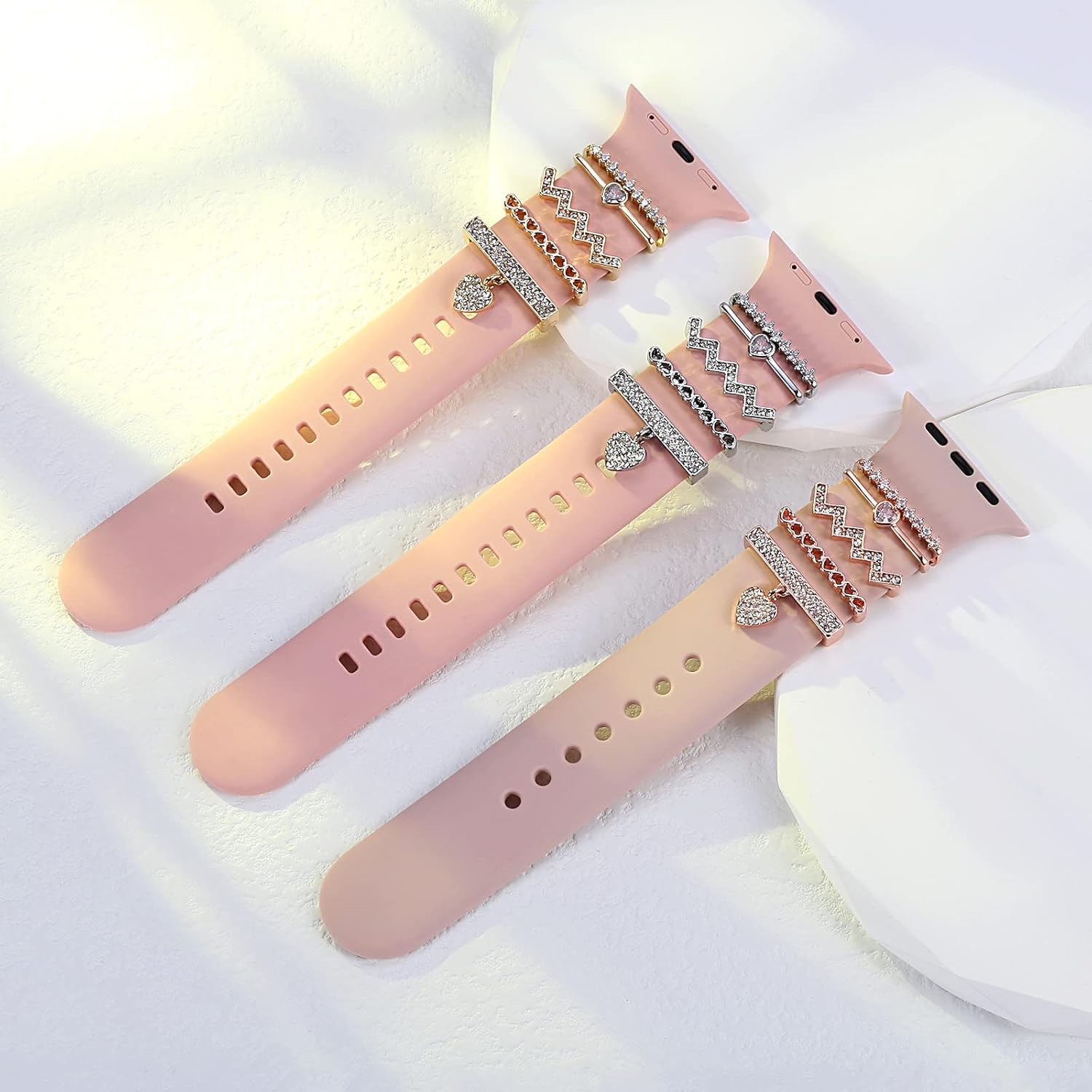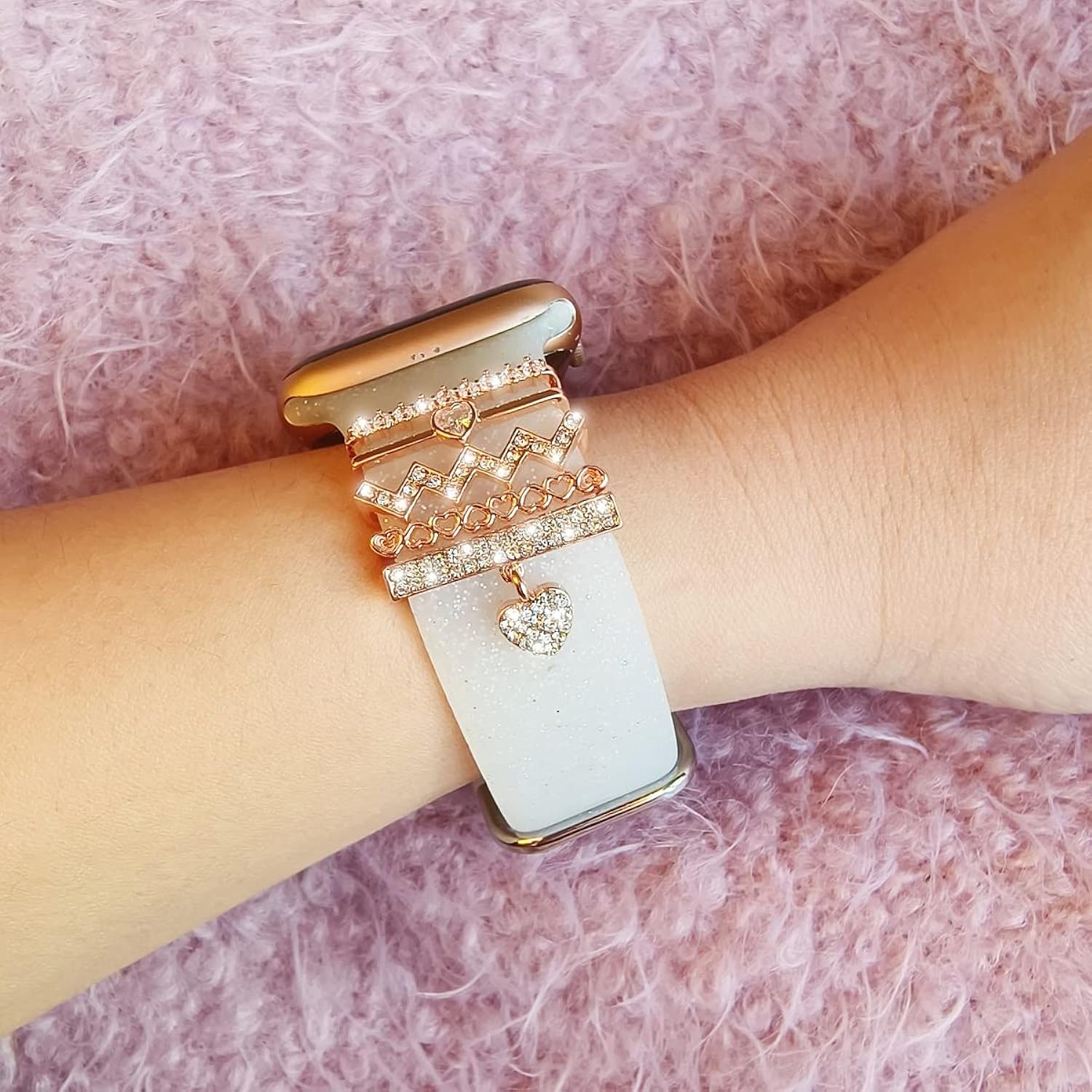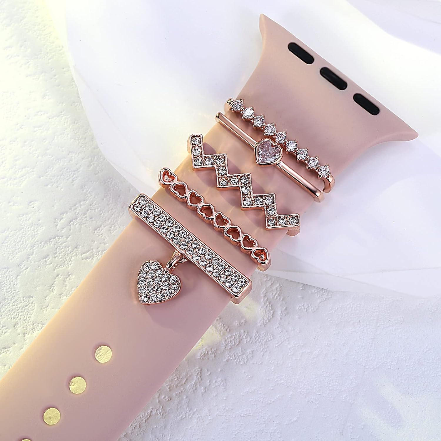 Perfect Match for your Silicone or Leather Band: Rhinestone heart love decorative watch band charm accessories will make your watch band a amazing sparkle look and fashionable.It is not only like glitzy jewelry on your watch band,but also a fun addition.