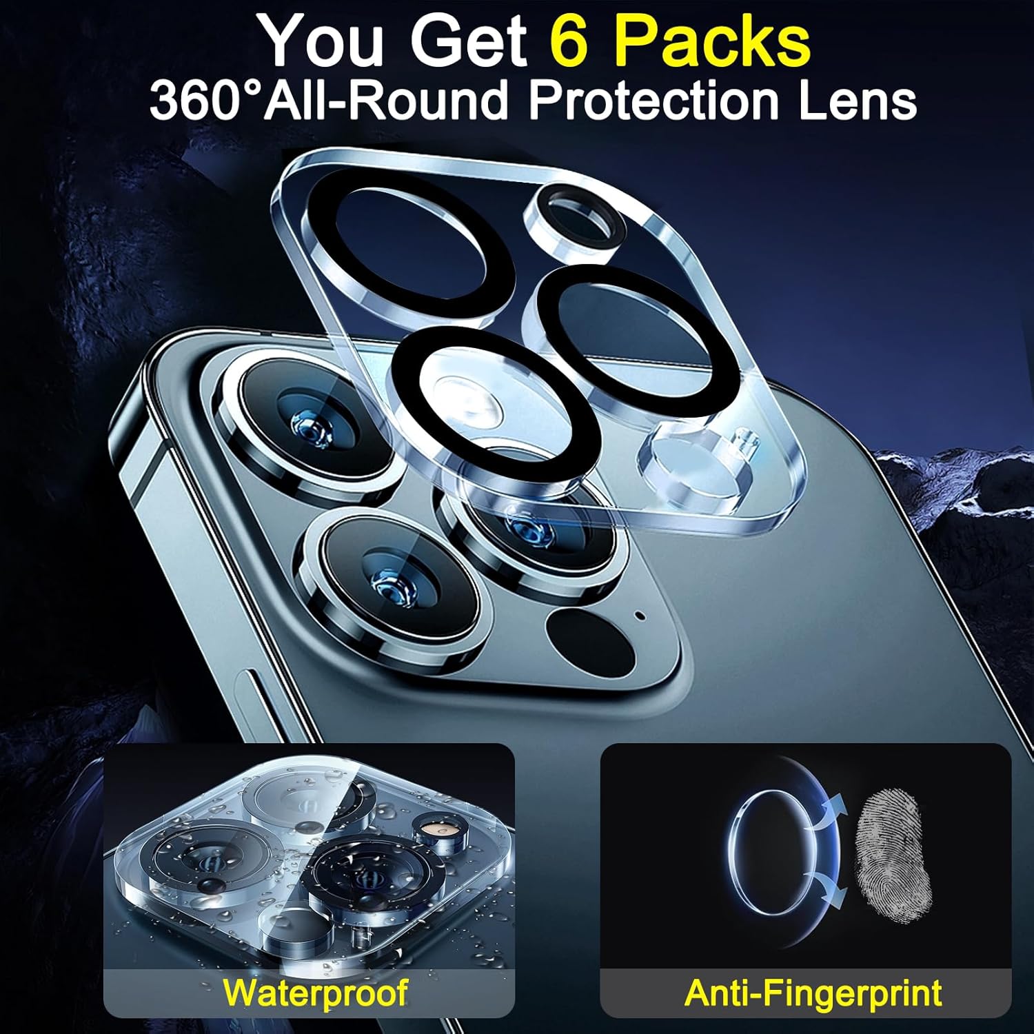 Compatibility: Included 6 Pack Tempered-Glass Camera Lens Protector, Design for iPhone 14 Pro Max & iPhone15 Pro Max & iPhone 14 Pro & iPhone 15 Pro, Not for iPhone 16 Pro Max. fully protect your phone.