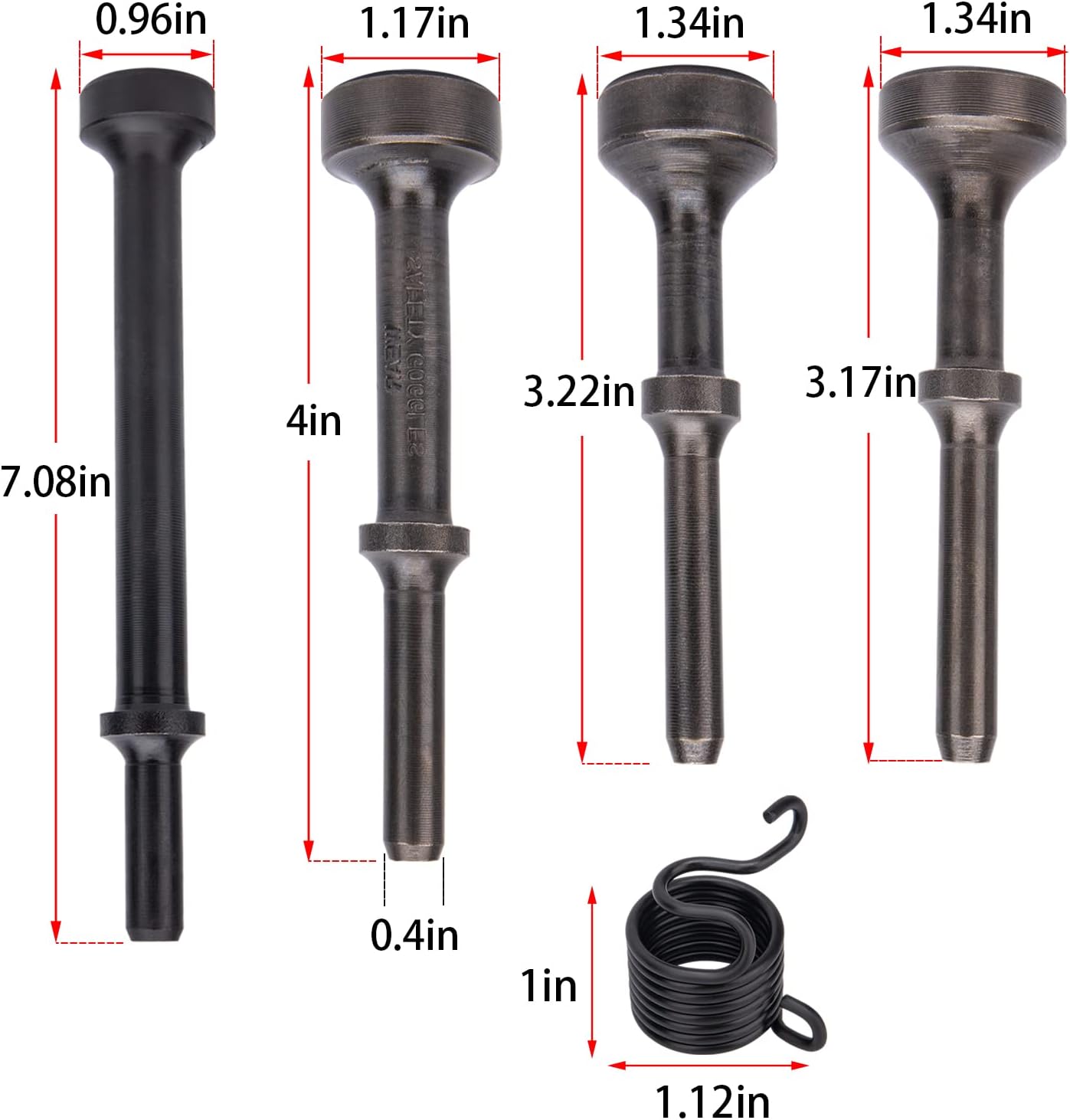 【Premium Kit】The air hammer bit includes 4 different shapes of hammer bit made of high quality steel and a spring to meet your different replacement needs, so you don't have to buy them individually, saving time and effort.