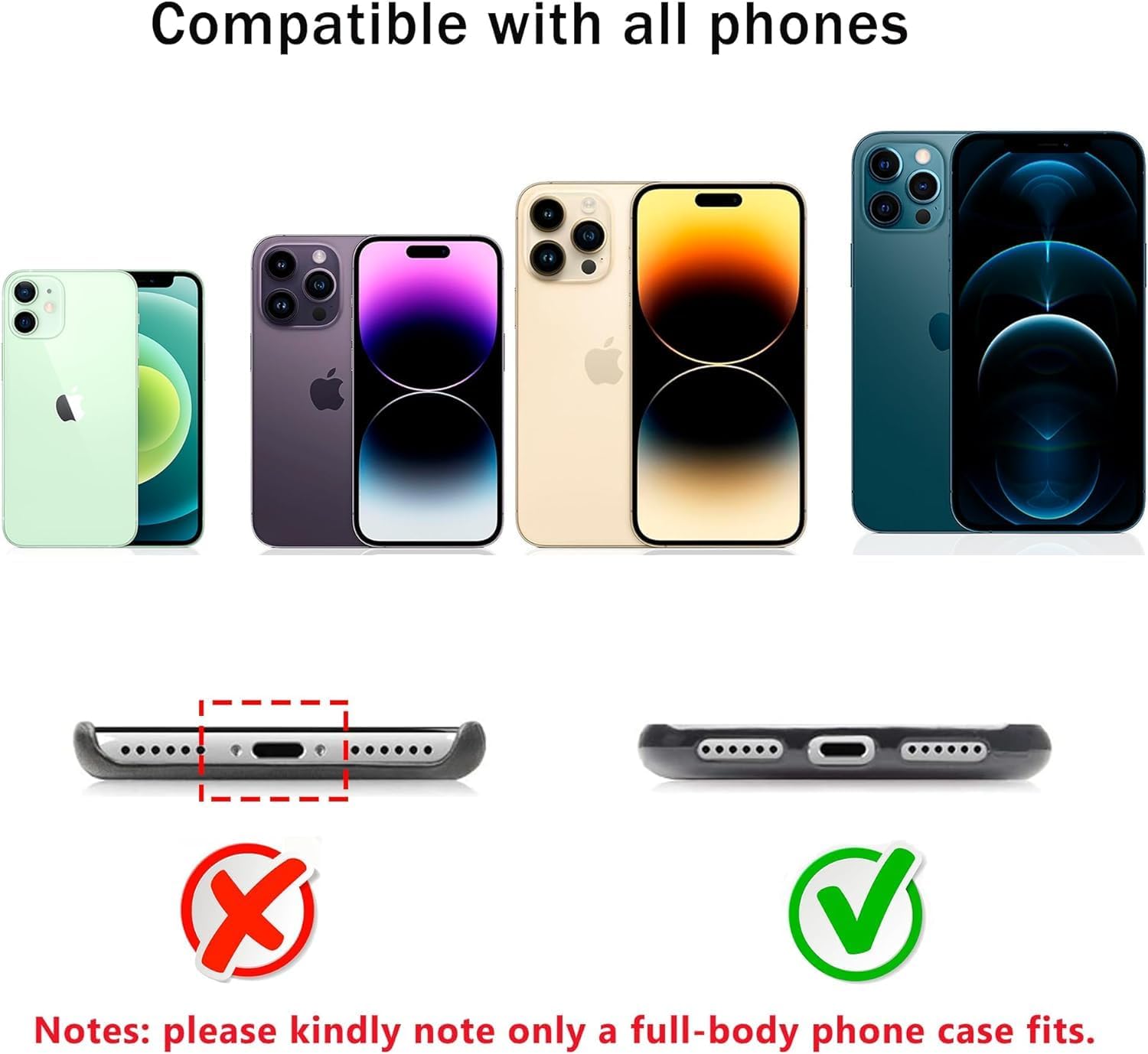 Fits All Smartphones: Universal Phone Lanyard for all mobile phones with a full-coverage case from 4 to 6.7 inches securely. Note: Not support half coverage phone case