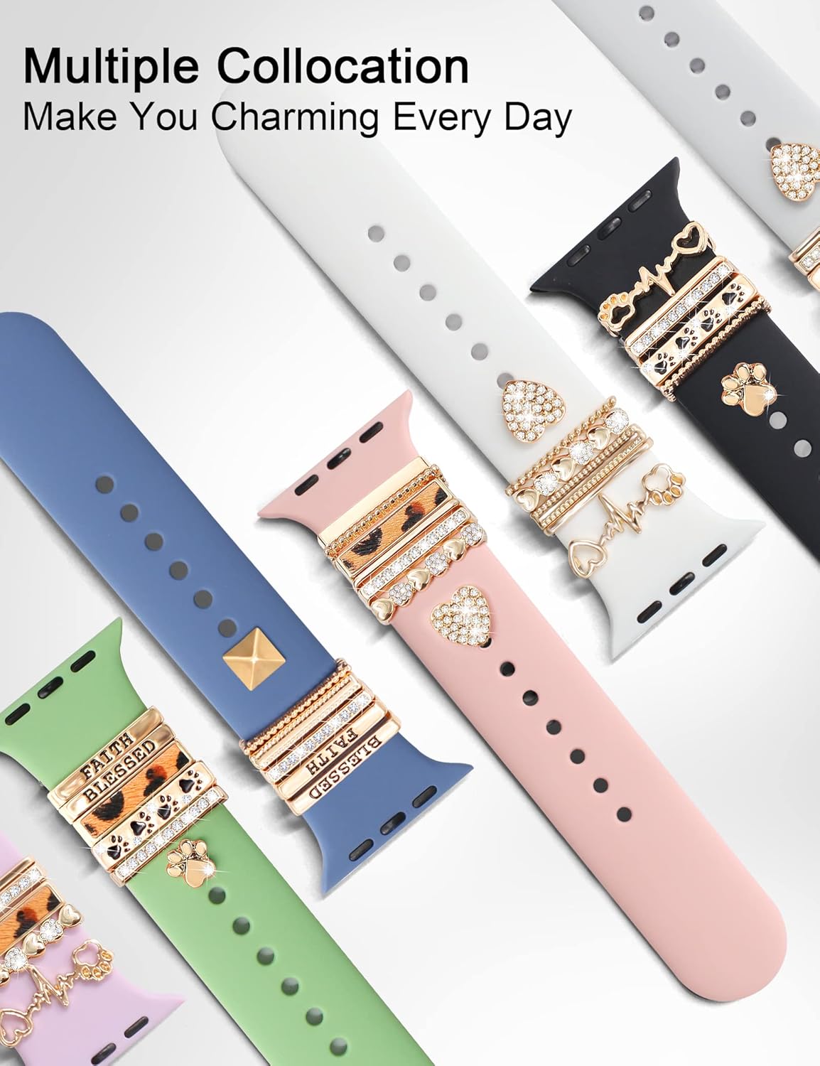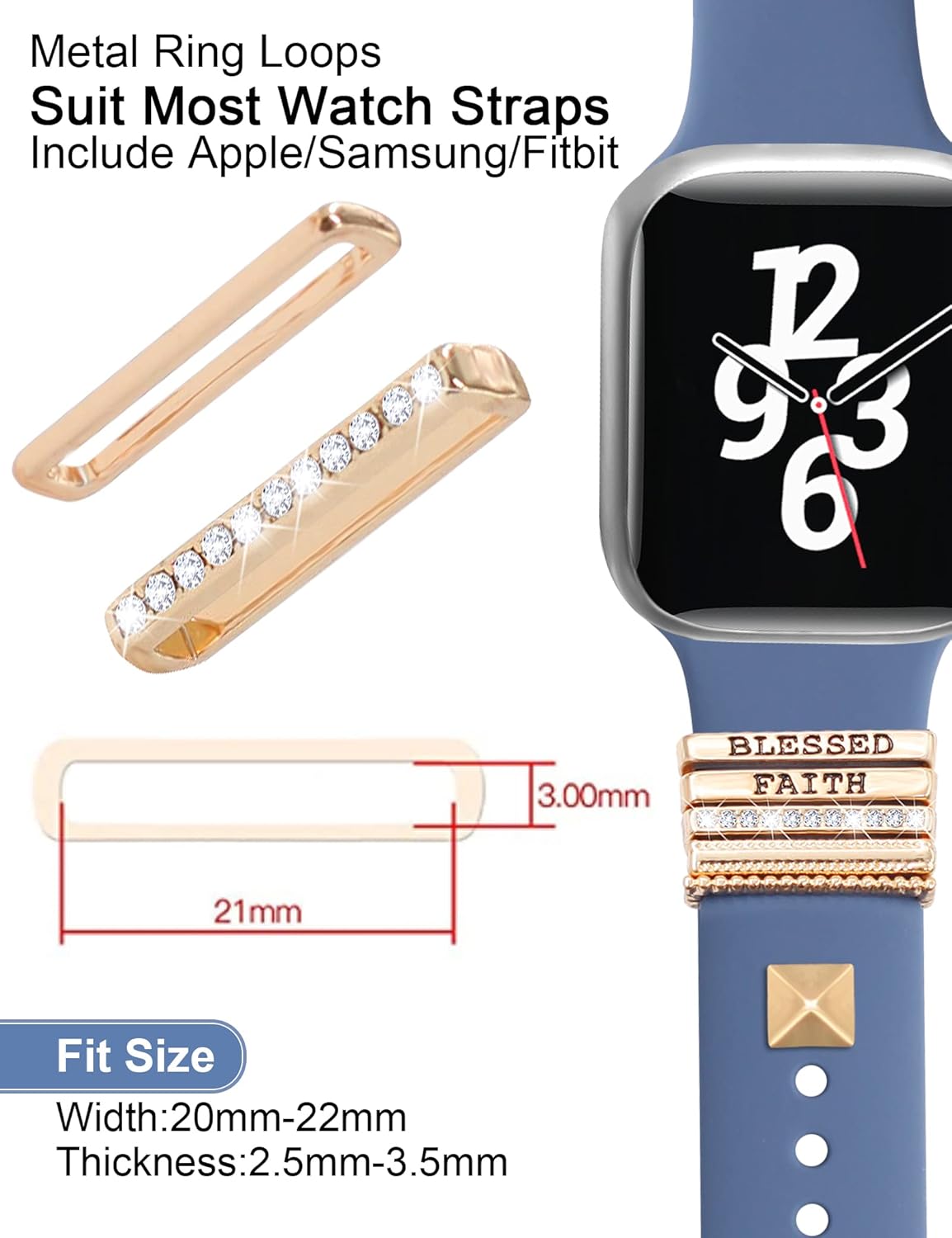 JR.DM 13 Pcs Silver Watch Band Charms with 10-Pcs Decorative Rings Loops 3-Pcs Decoration, Compatible with Apple Watch Ban...