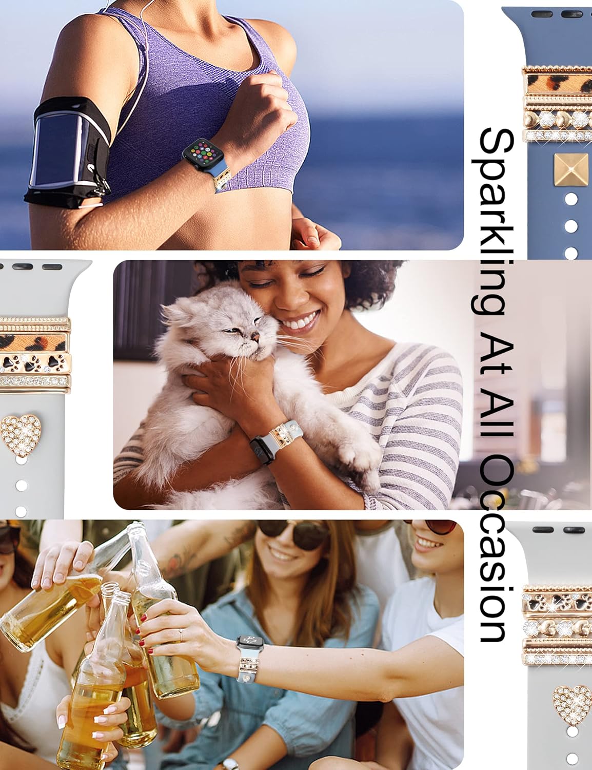 Durable And Durable:These charms are made of high-quality metal and sparkling crystals. They are well polished, super high strength, wear-resistant, and protect your skin from harm. Such high-end material is not easy to fade, gorgeous, noble, elegant, cute and bling design with delicate engraving, making you and your smartwatch stand out