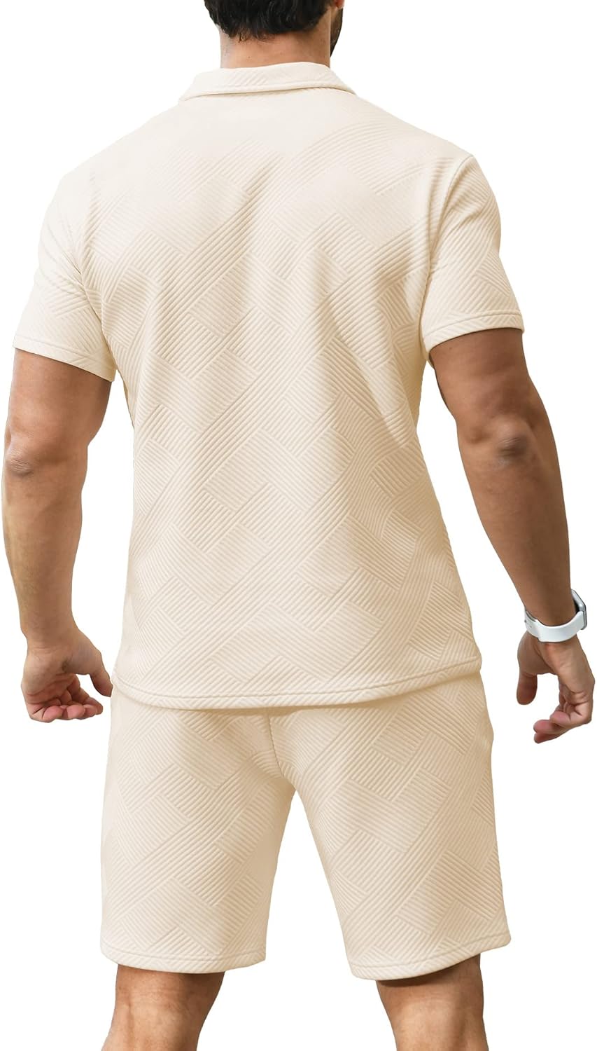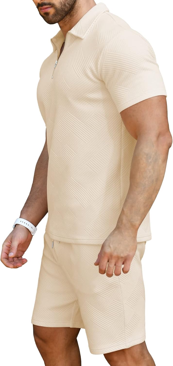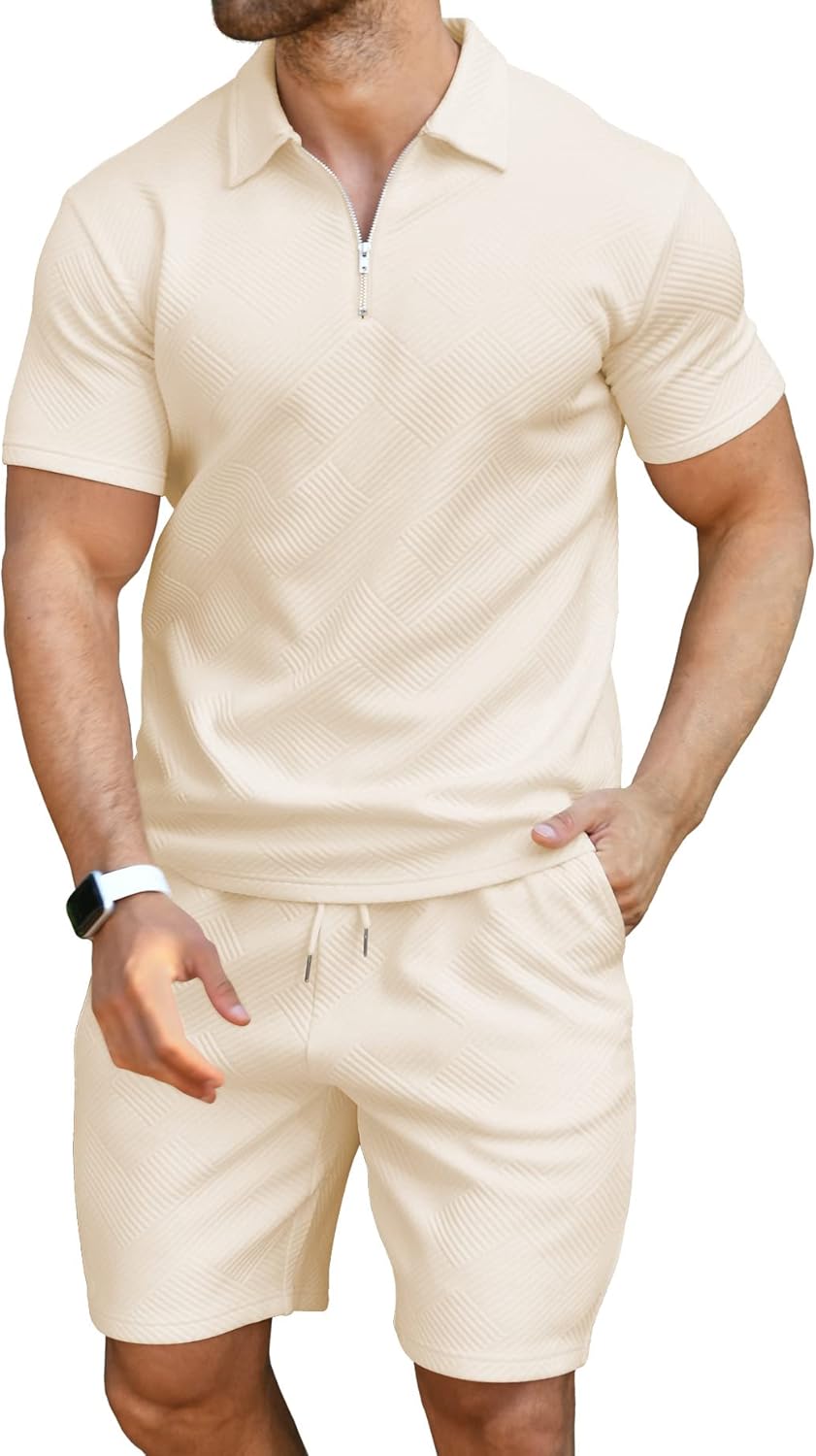 This zipper polo suits for men set with a pair of tailored hats, loafers and finish with sunglasses for a athleisure vibe.No matter how to match up, it looks very attractive