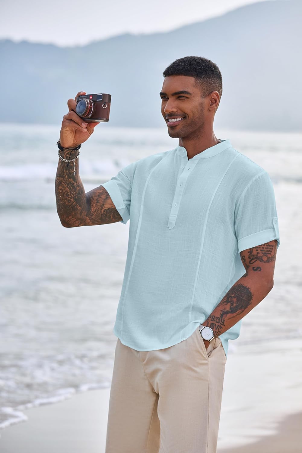 [OCCASSION] Band Collar henley Shirts takes your typical tee up a notch with its signature buttons while offering comfortable, effortless style. Great choice for beach, wedding, vacation, office, school, party, daily casual wear etc.
