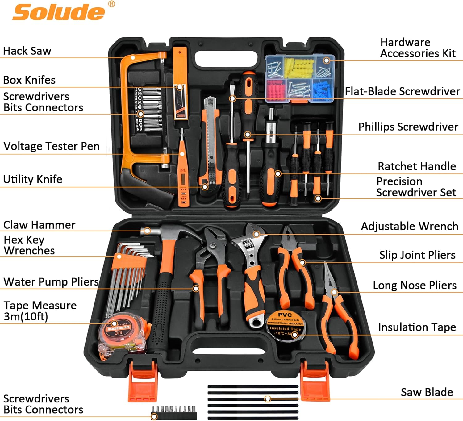 SOLUDE Tool Set,182-Piece Home Repair Tool Kit for Men Women College Students,Household Basic Hand Tool Sets with Case for...