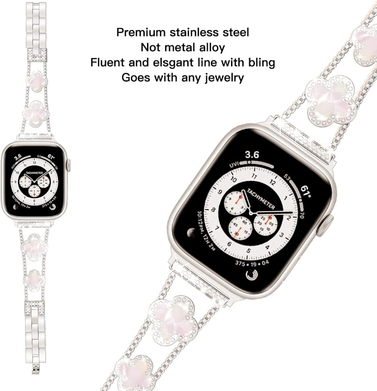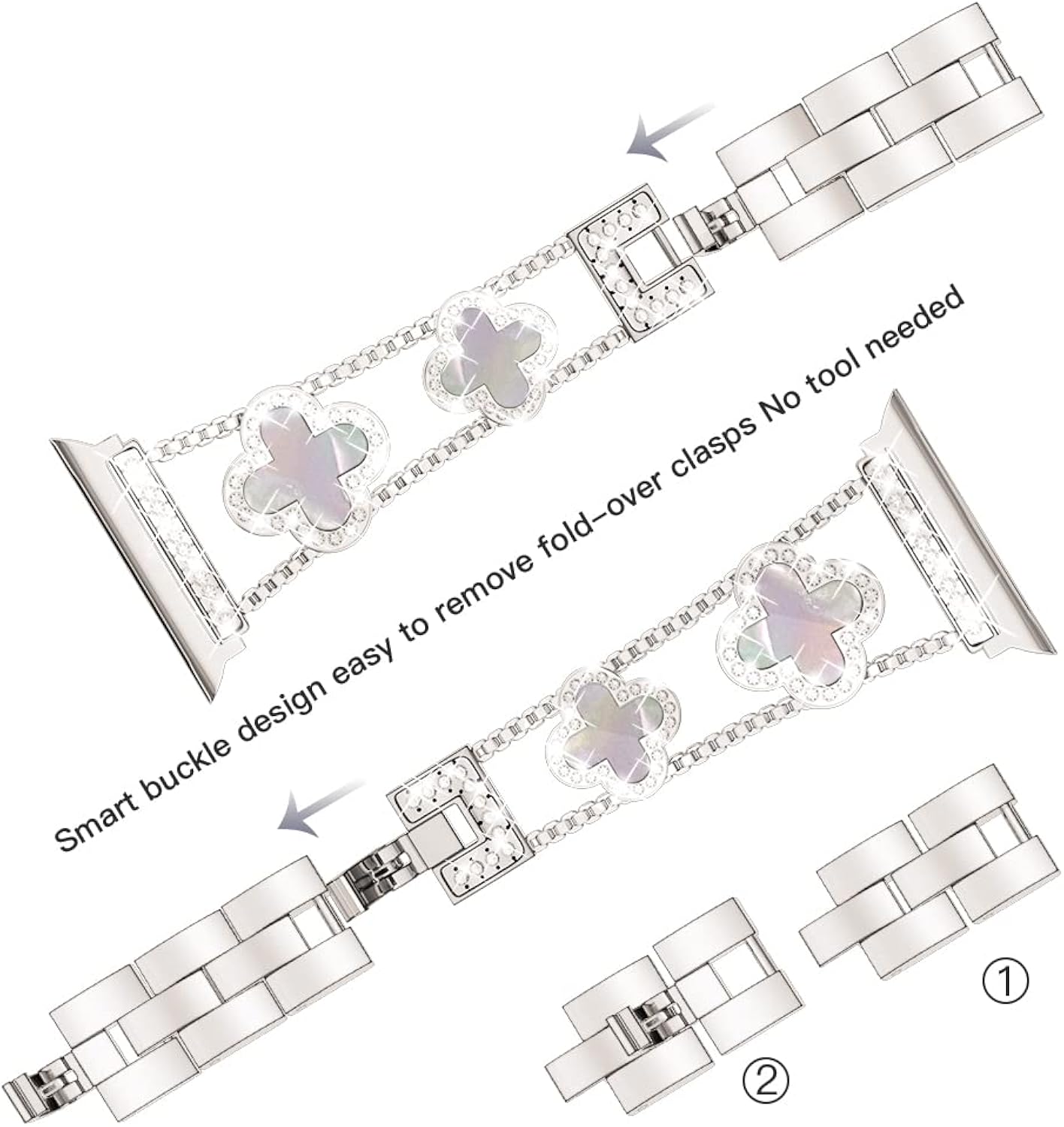 [METAL PERSONALIZED WATCH BAND] This diamond personalized watch band is made of high quality metal material with sparkling rhinestone decorations, excellent polished effect, the surface has been treated with high quality protection process, waterproof/sweatproof, sturdy and durable, bringing you a great wearing experience. It is a perfect gift for all kinds of watch band lovers, suitable for different outfits and occasions.