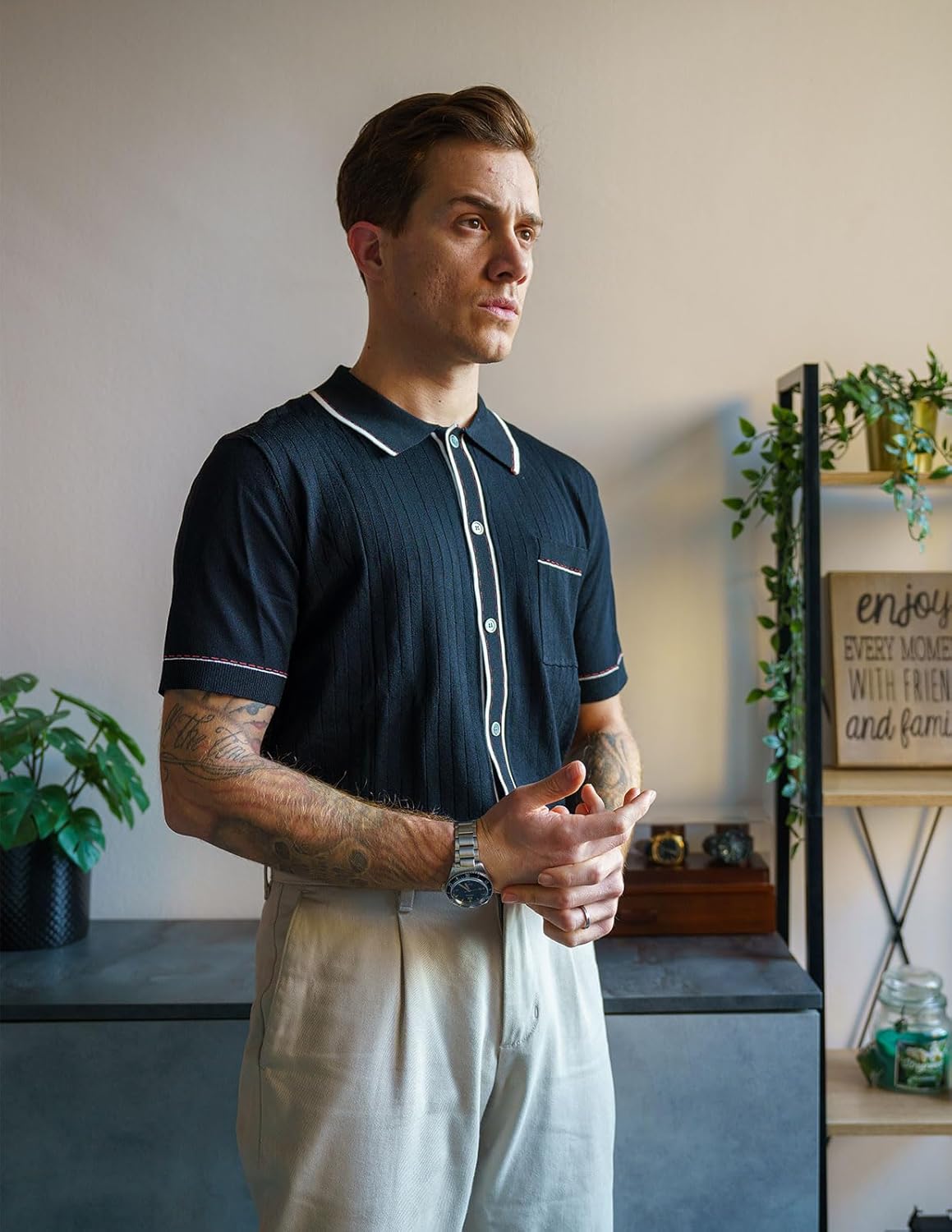 Style:Knitted Polo shirts are richer in design than traditional sports Polos. They are stylish and simple without missing the retro charm. They are classic and versatile, and they are Italian-style items that are loved by the Mafia and Hollywood movie stars.