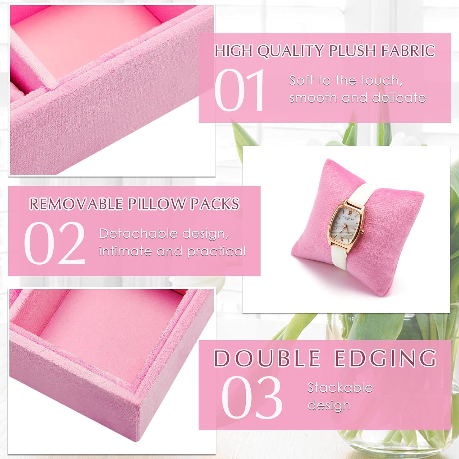 Serve for a Long Time: the velvet watch jewelry organizers are mainly made of MDF and ice velvet, reliable and not easy to tear, deform or fade, you can stack them for saving space, and they can well keep your watches from scratching and serve you for a long time