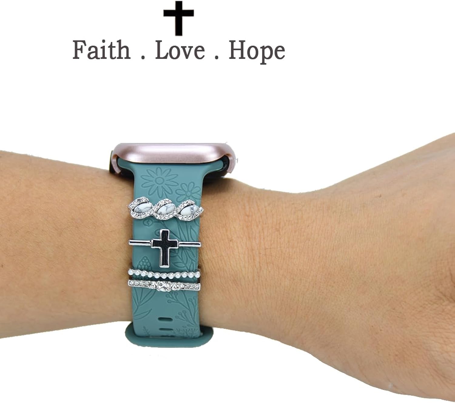 Easy to Use , charms for watch bands for women silver cross charms classy Ornament band charm , watch charms for band women clasp set are made of high quality metal and sparkling crystals, highly polished, super high strength, wear-resistant, and protect your skin from harm, high-end material that is not easy to fade, delicate engraving, gorgeous,noble,elegant,cute and bling design, make you and your smart watch stand out from the crowd
