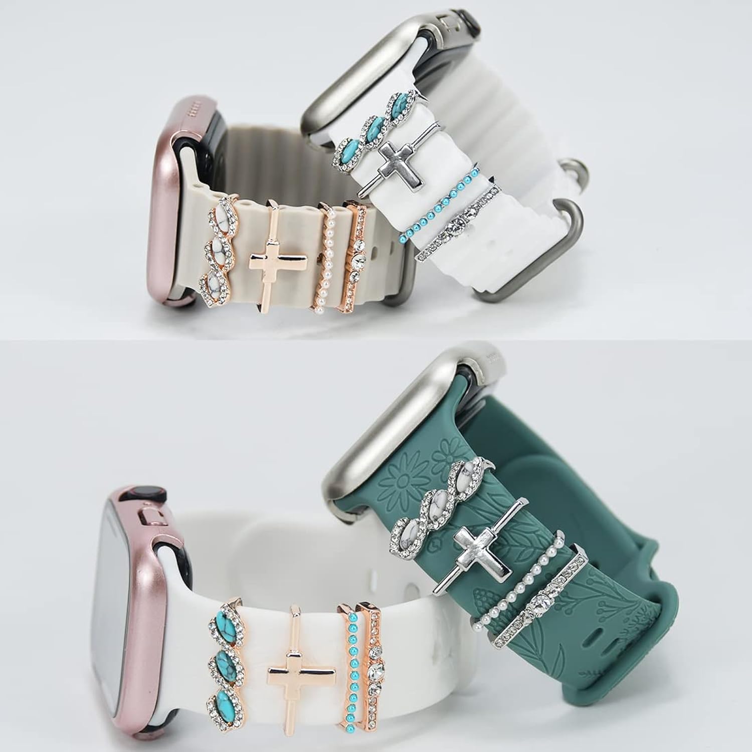 Unique silver cross watch band charms , iwatch cross charms for women sparkly stones Shining Cute Chic Accessories Rings for Apple watch band Sparkly decorative accessories charms and luxury women rings loops set for iwatch band,elegant for your smart watch wristband,sturdy watch band charms for women to use for a long time, The simple and stylish watch decorative ring loops bring more compliment for your band.