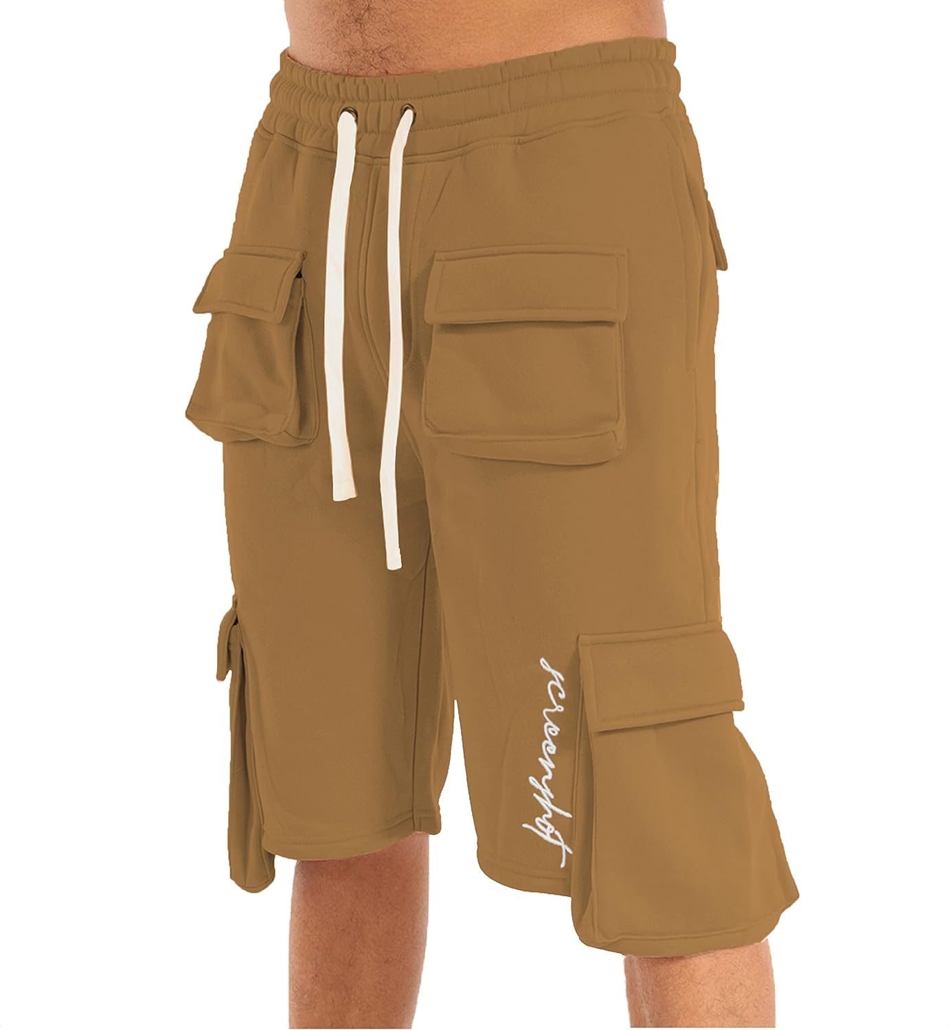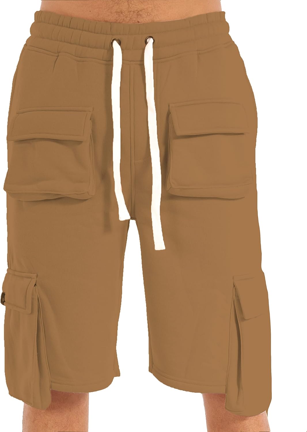 SCREENSHOT Mens Urban NYC Hip Hop Utility Fit Premium Fleece Shorts - Varsity Street Fashion SweatShorts Ribbed Wasteband