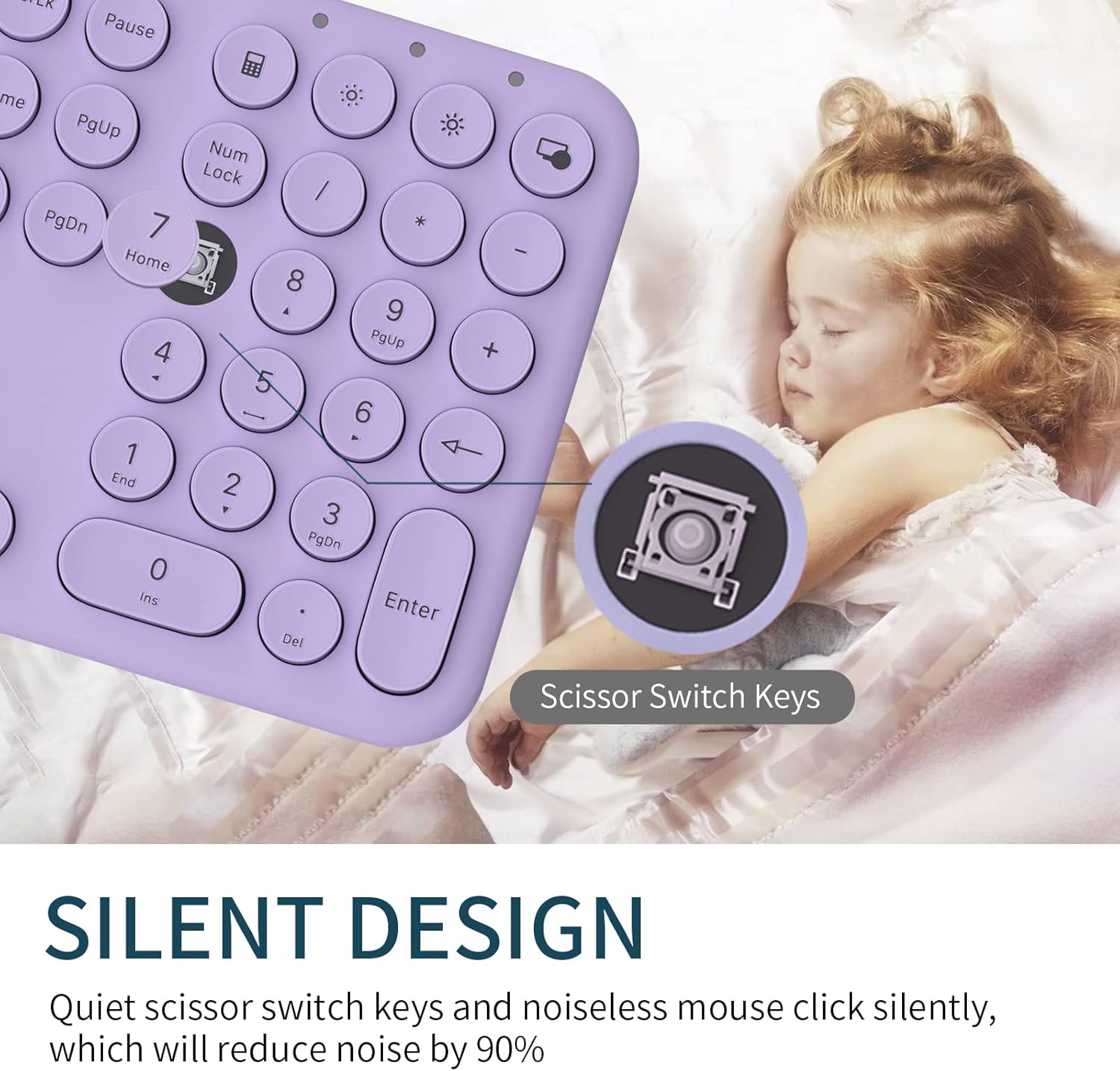 [ Quiet Keyboard & Mouse ] The noise-reducing key of the keyboard and the silent click mouse will make you more focused on your work. Enhanced scissors key, less noise, more sensitive and durable.