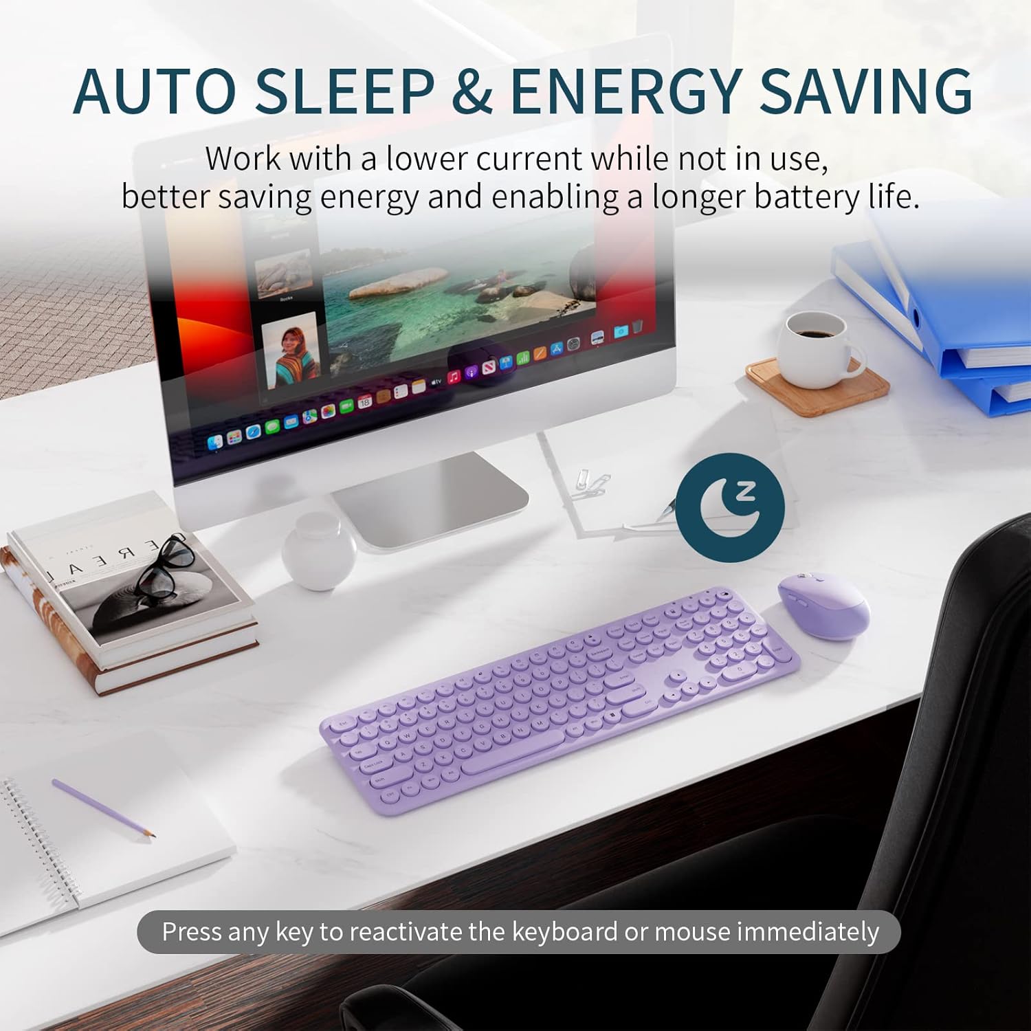 [ Auto Sleep Keyboard & Mouse ] Wireless keyboards and mice have an auto sleeping mode, once you stop using the wireless keyboard set for 10 seconds, they will work at a lower current for energy saving. They can go on for months without the hassle of replacing batteries.
