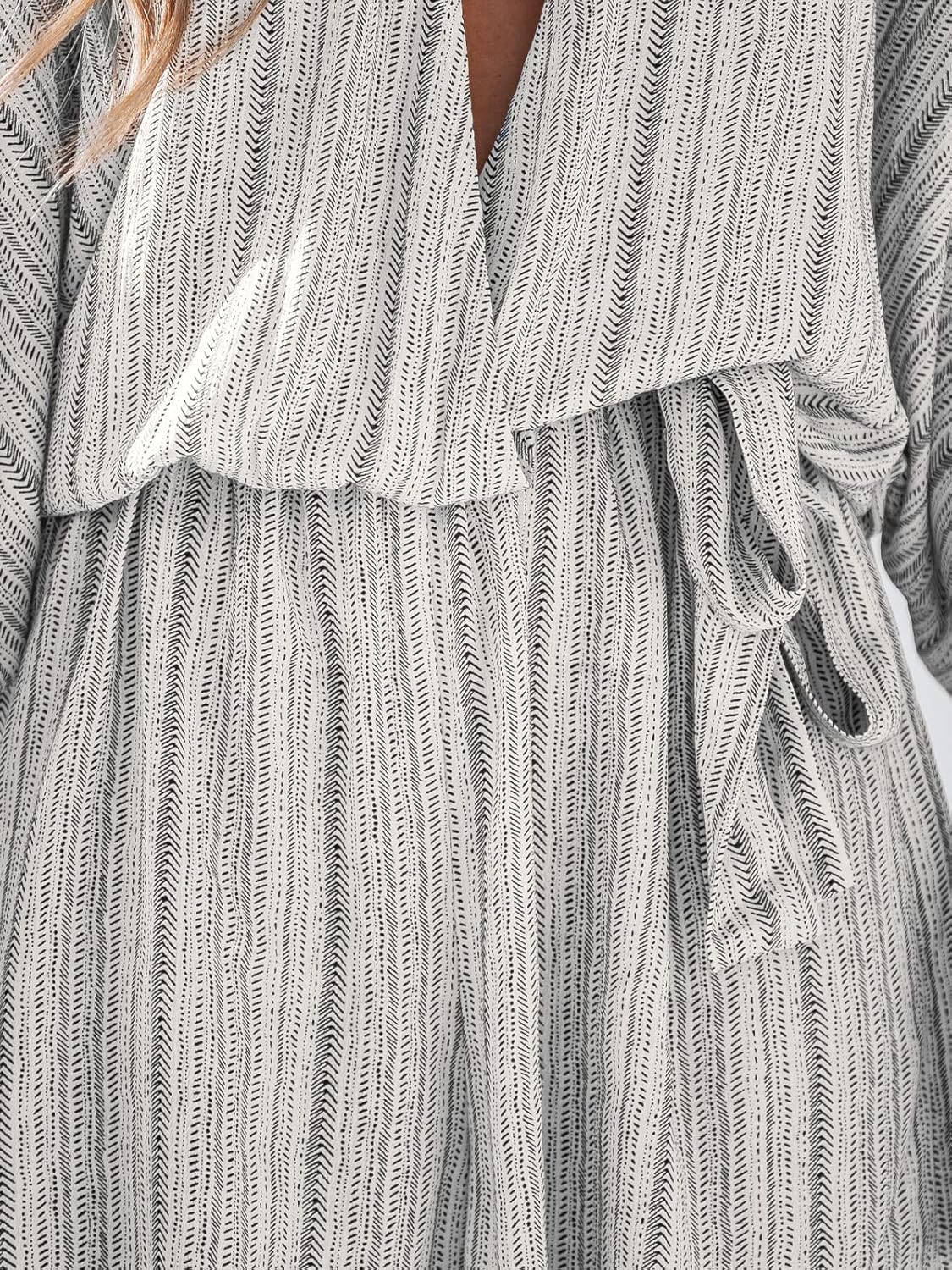 Unique Design: Unleash your wild side with our lace up striped romper, a fierce and fabulous ensemble adorned with a black striped and featuring a waist-cinching belt, half sleeves,loose fit style, ensuring you'll make a fashion statement with every step and turn heads wherever you go