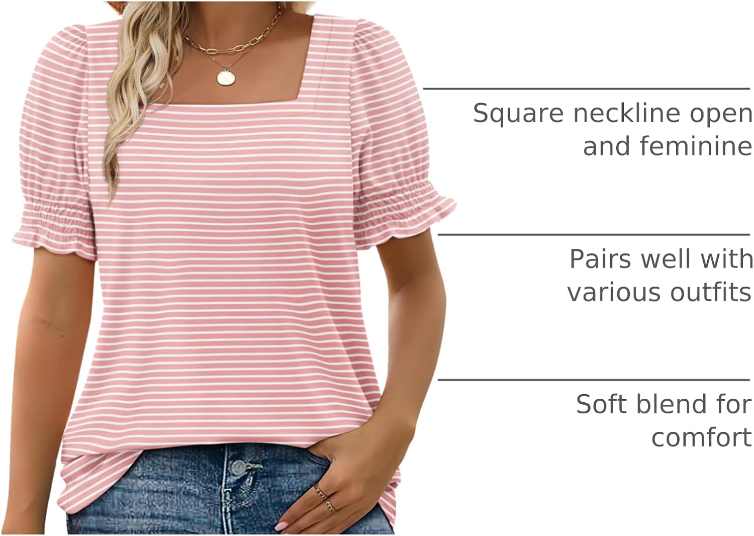 WIHOLL Tops for Women Summer Casual Ruffle Trim Sleeve Square Neck T Shirts