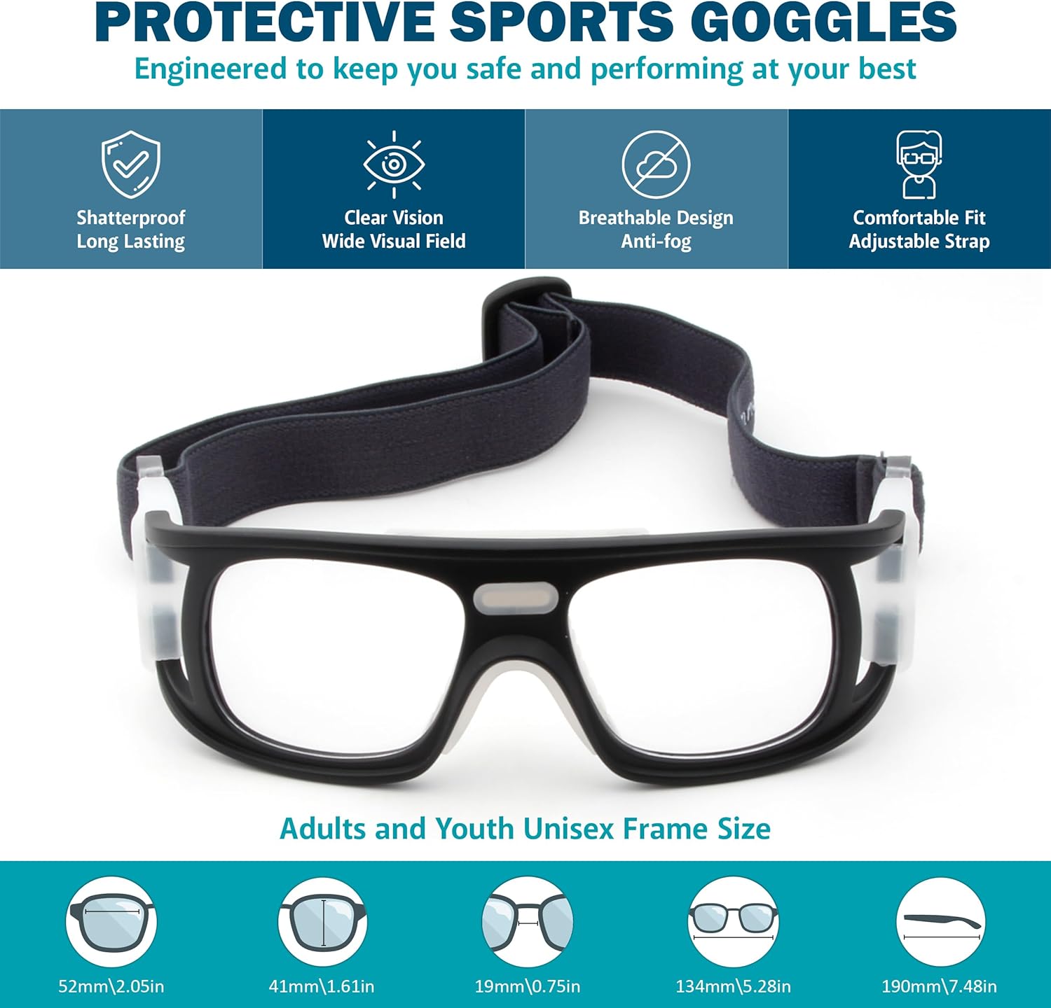 ☑️ ANTI-FOG LENS - Equipped with an anti-fog coating, the lenses of these goggles are designed to effectively wick moisture away from the surface. This prevents the buildup of fog, resulting in improved performance and efficiency during outdoor sports such as basketball, tennis, volleyball, baseball, badminton, racquetball, soccer, running, and other activities. ?️