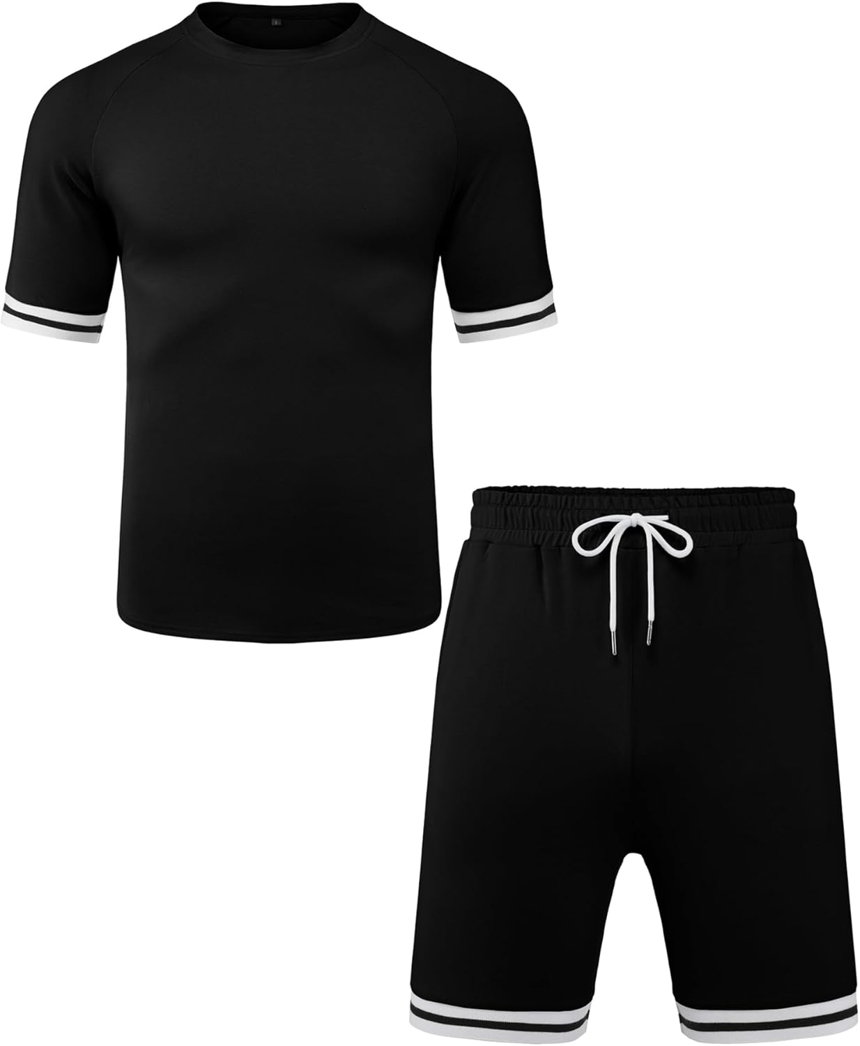 Design: Mens 2 Piece Outfit Sets, Men tracksuit sets, men tracksuits 2 piece set,short sleeve shirts, crewneck, short sleeve and high-rise elastic waistband shorts, side pockets, basic solid, adjustable waist drawstring. A must-have summer outfit sets in your wardrobe!