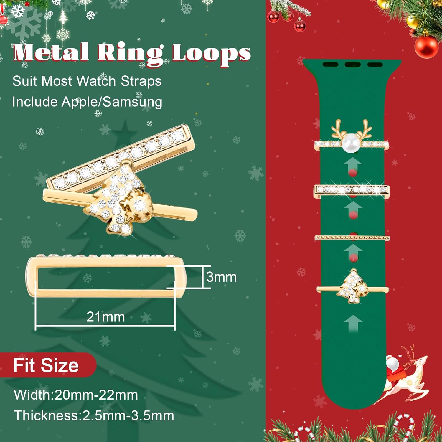 High Compatibility:Update your watch band to a new sparkling look instantly by adding adorable watch band charms! These metal decorative rings loops accessories are compatible with the Apple Watch band Samsung band width between 20mm to 22mm. Thickness less than 3mm works the best effect