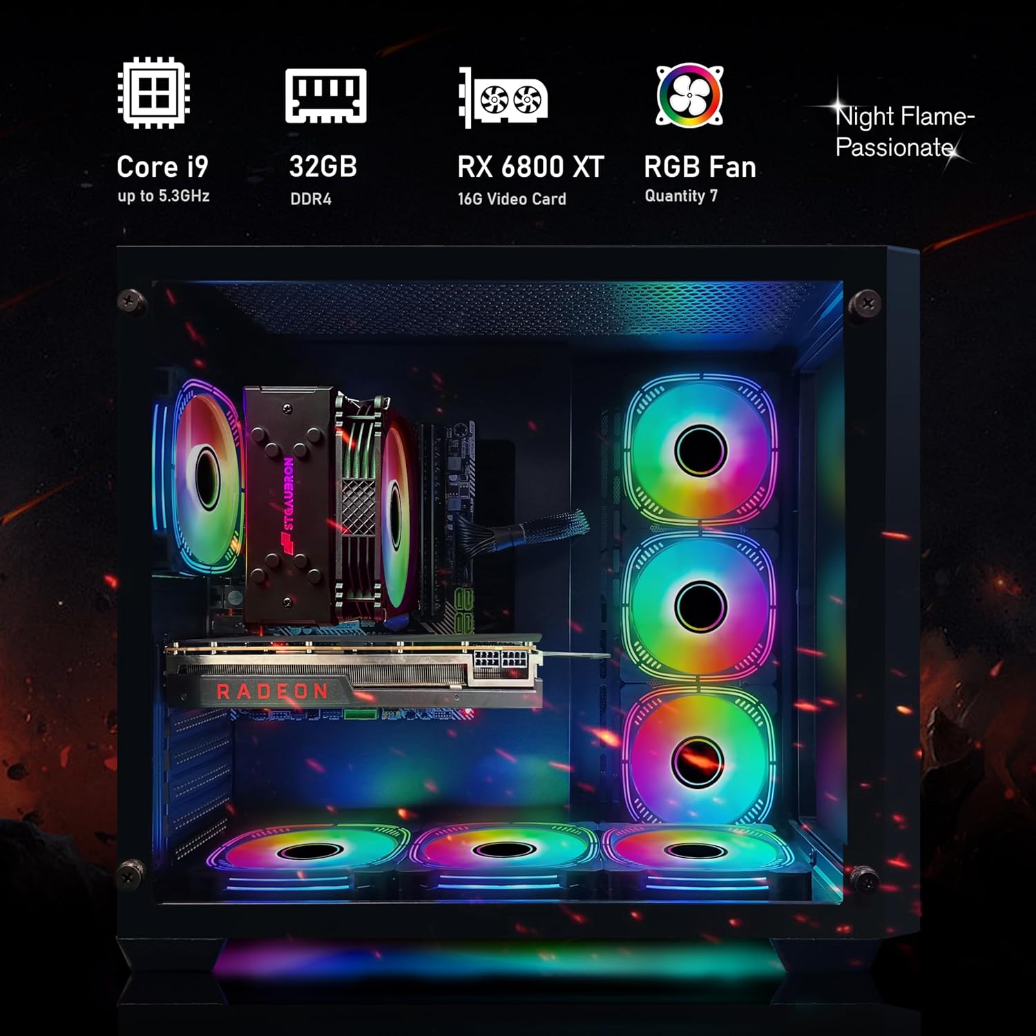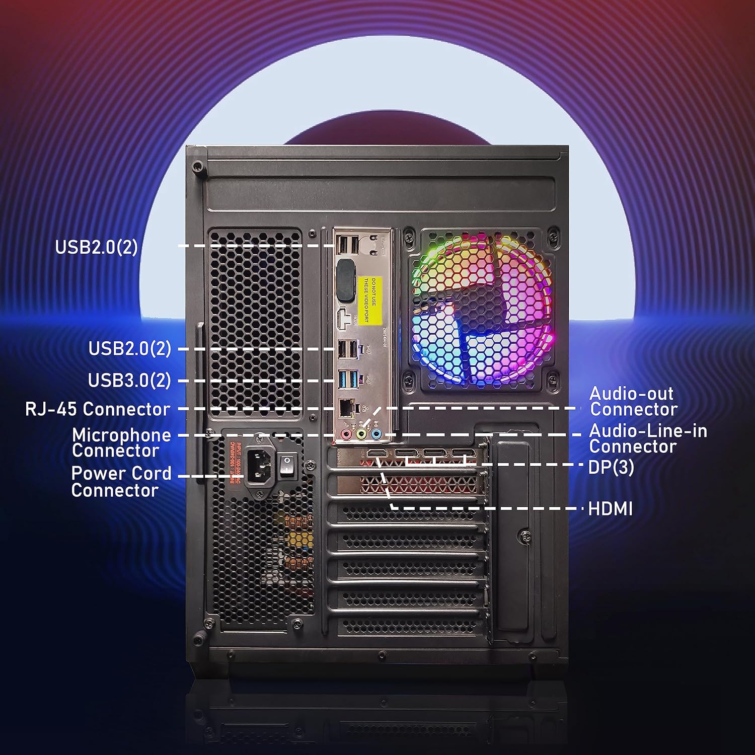 Gaming Desktop Connectivity: This gaming pc comes with RGB Fan x 7 | 1x RJ-45 | USB 600M Wi-Fi | USB Bluetooth 5.0 | AMD Radeon RX 6800 XT 16G GDDR6 Video Card | 1x HDMI | 3x DisplayPort