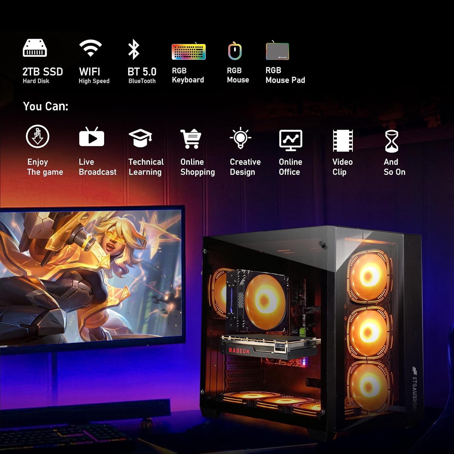 This Gaming PC Desktop is well-suited for a variety of tasks including gaming, study, business, photo and video editing, streaming, day trading, crypto trading and so on