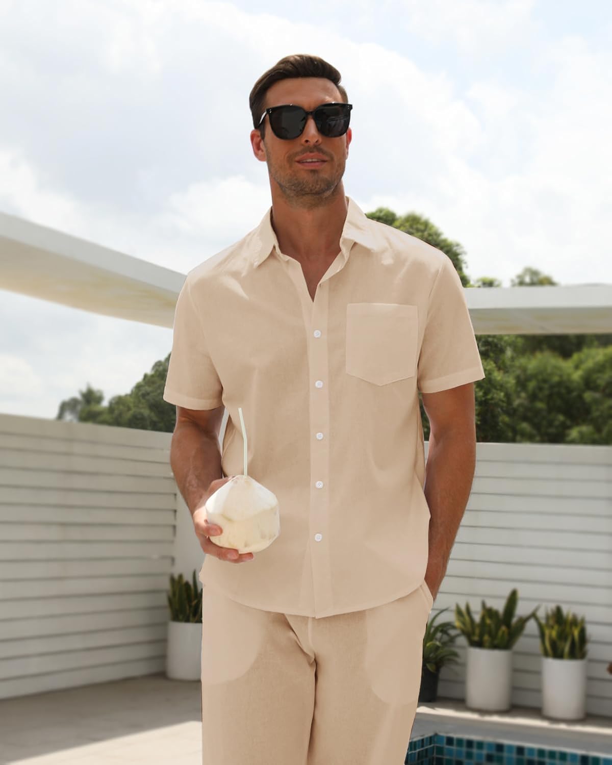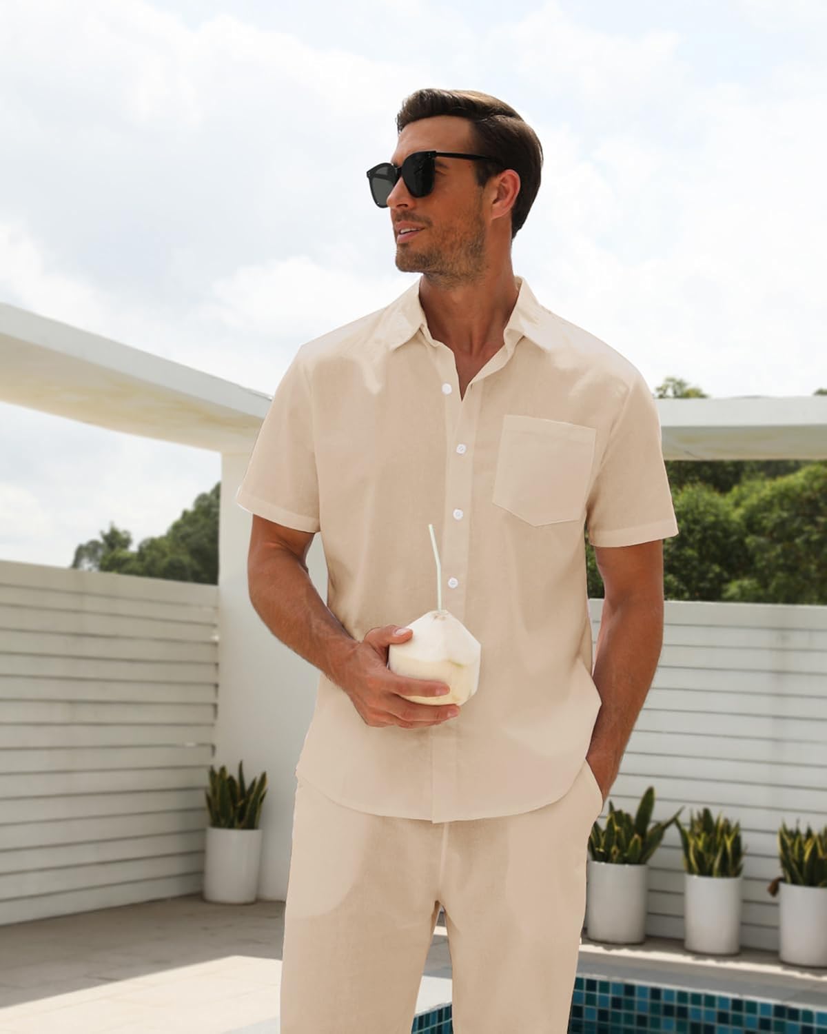 【Occasion】All white outfits for men are perfect for beach wedding, yoga, leisure, formal work, all-white party, athletic, Hawaii, cruise, vacation, sleeping, dating, fashion show, street photography, honeymoon, anniversary trip and golf. Men linen sets outfits 2 piece are extremely versatile!