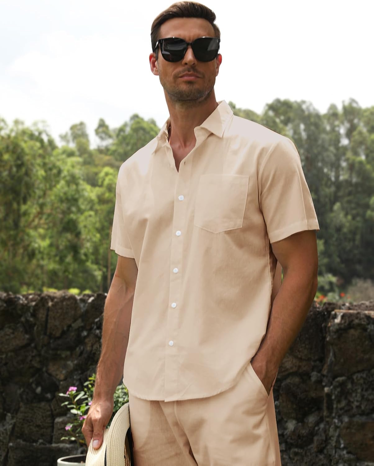 【Premium Fabric】The vacation wear mens linen sets are made of lightweight, breathable, soft-touch fabric. Mens beach clothes make you feel cool and comfortable in the hot summer.