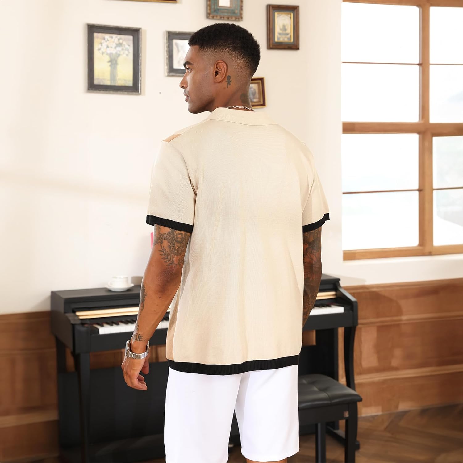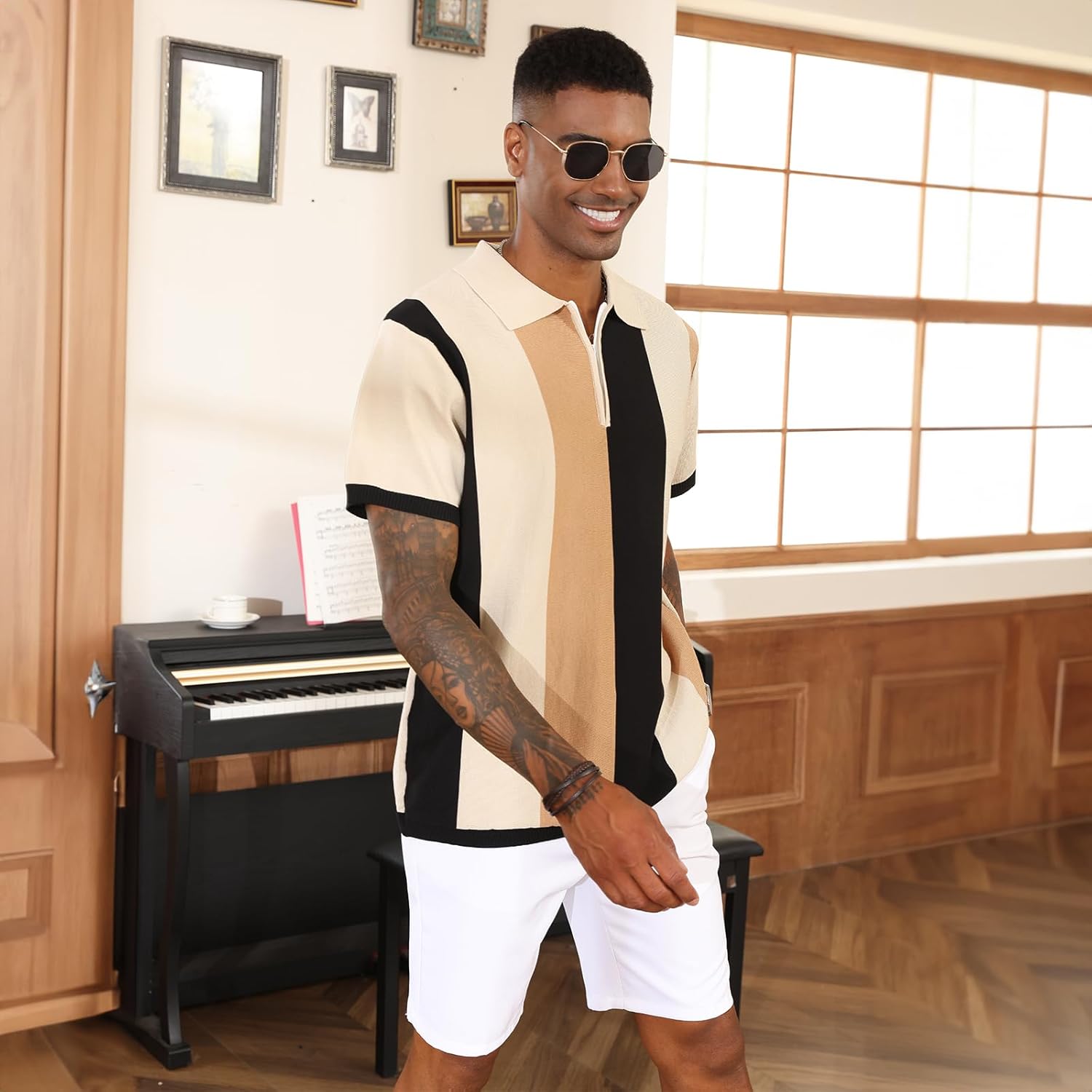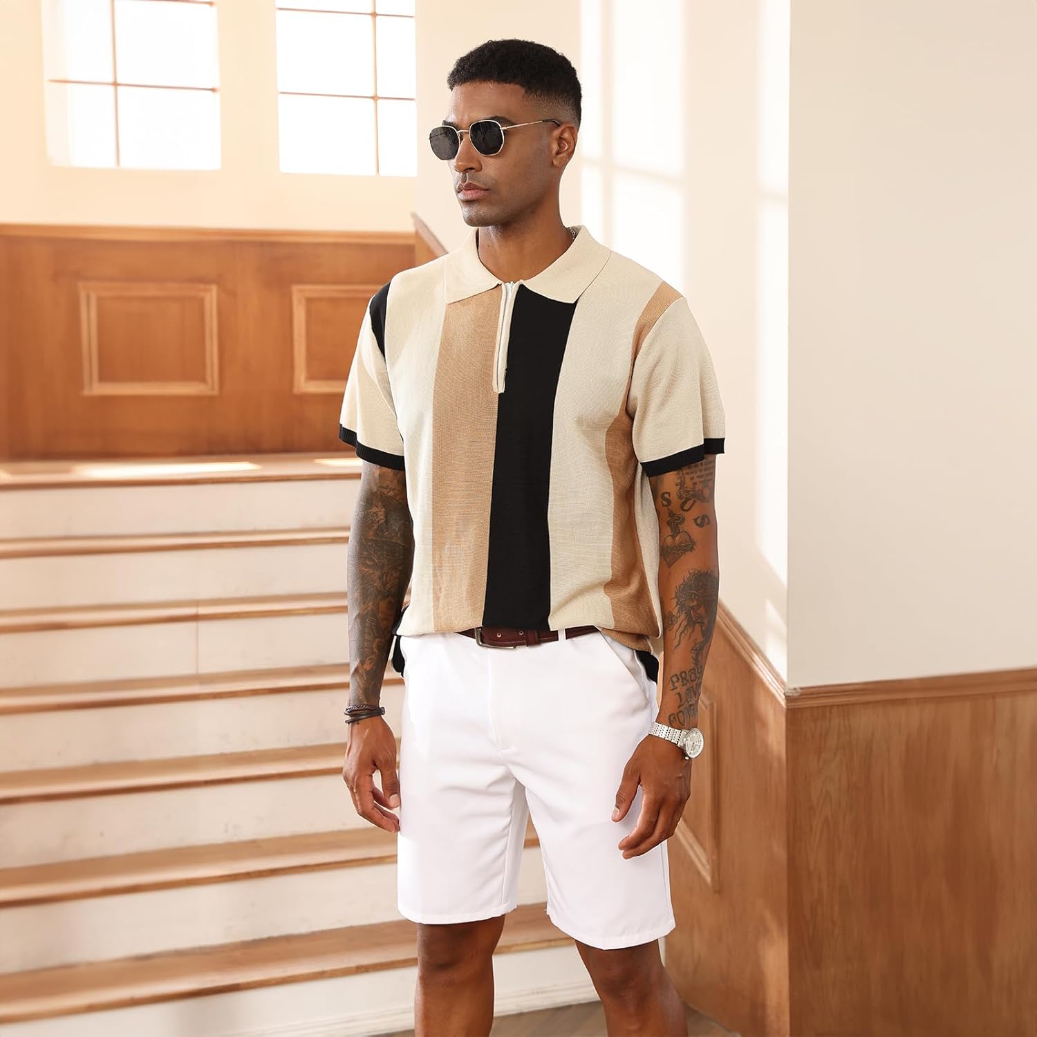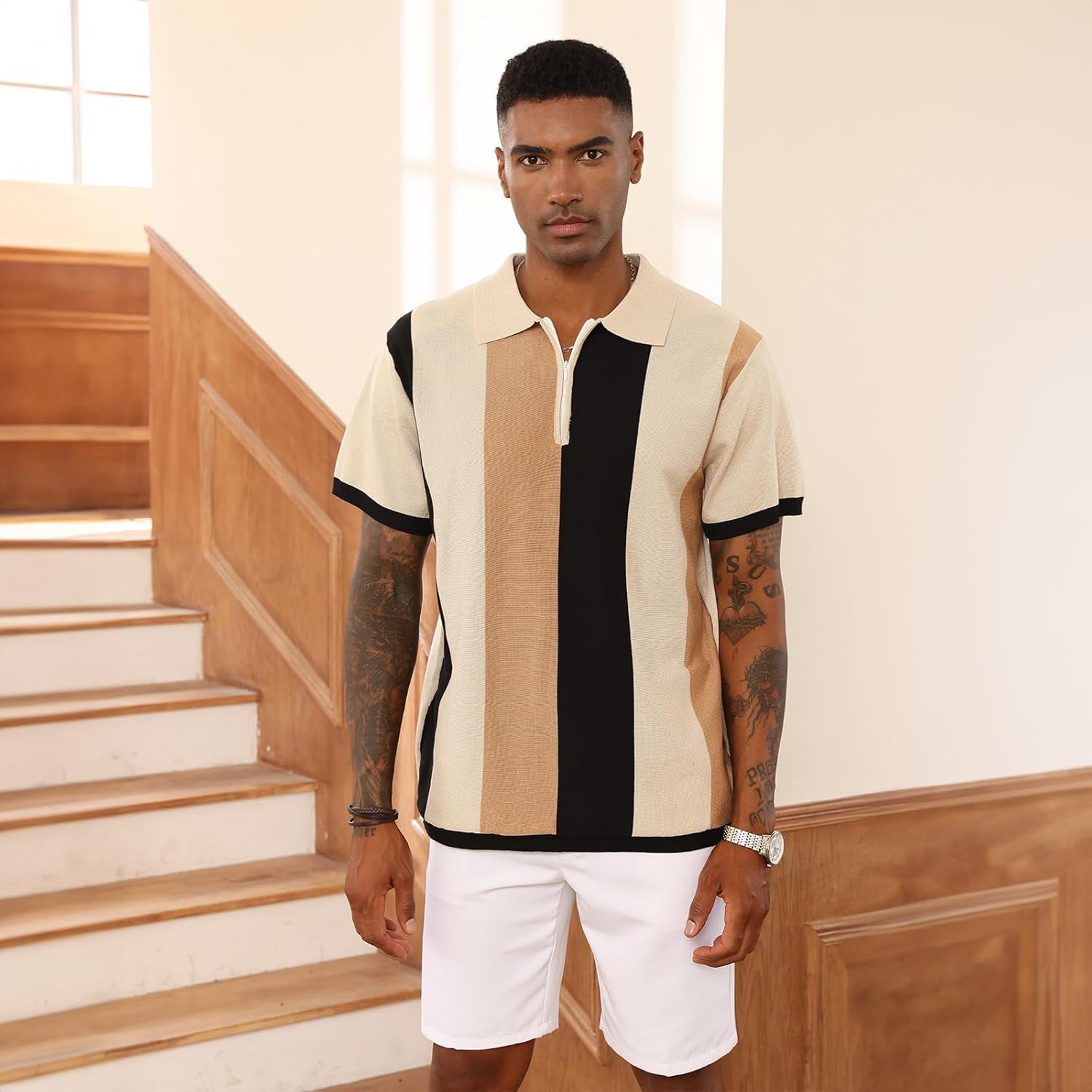 Men's Fashion Polo Shirts Vintage Striped Knitting Shirts Casual Slim Fit Golf Shirts