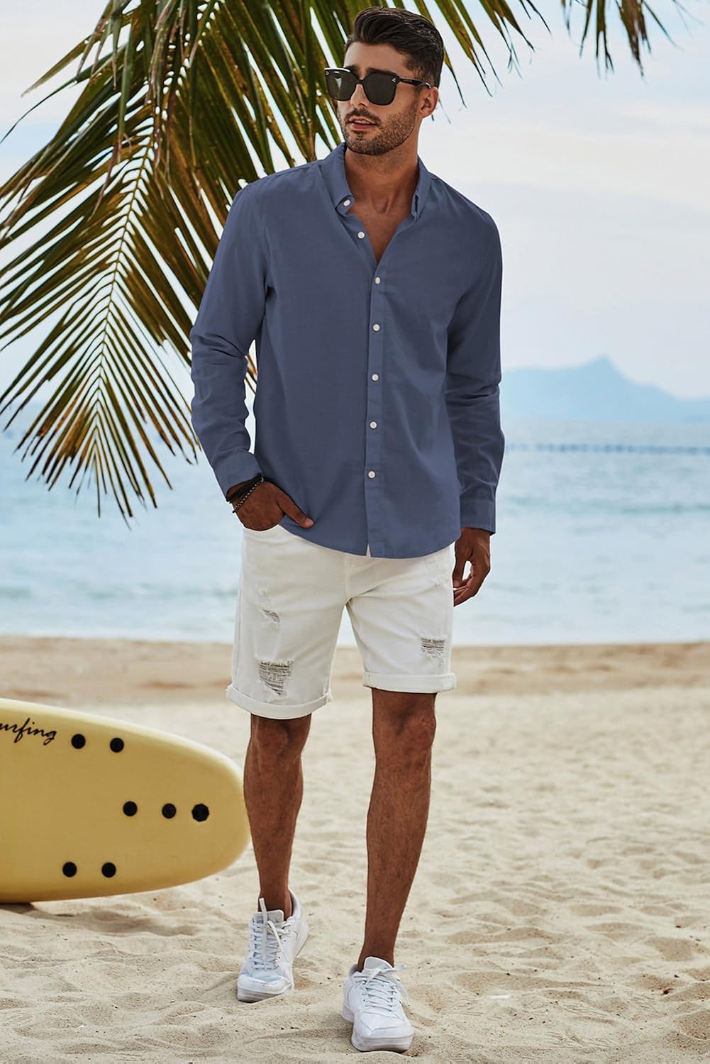 Pairs: You can pair long sleeve button down shirts with chinos or jeans for a casual daily wear look, or match them with dress pants for a sharp and classy appearance. This versatile shirt is essential in every man's wardrobe and suitable for all seasons. It is perfect for office, business meetings, dates, nights out, clubs, weddings, beaches, travel, and casual daily wear.