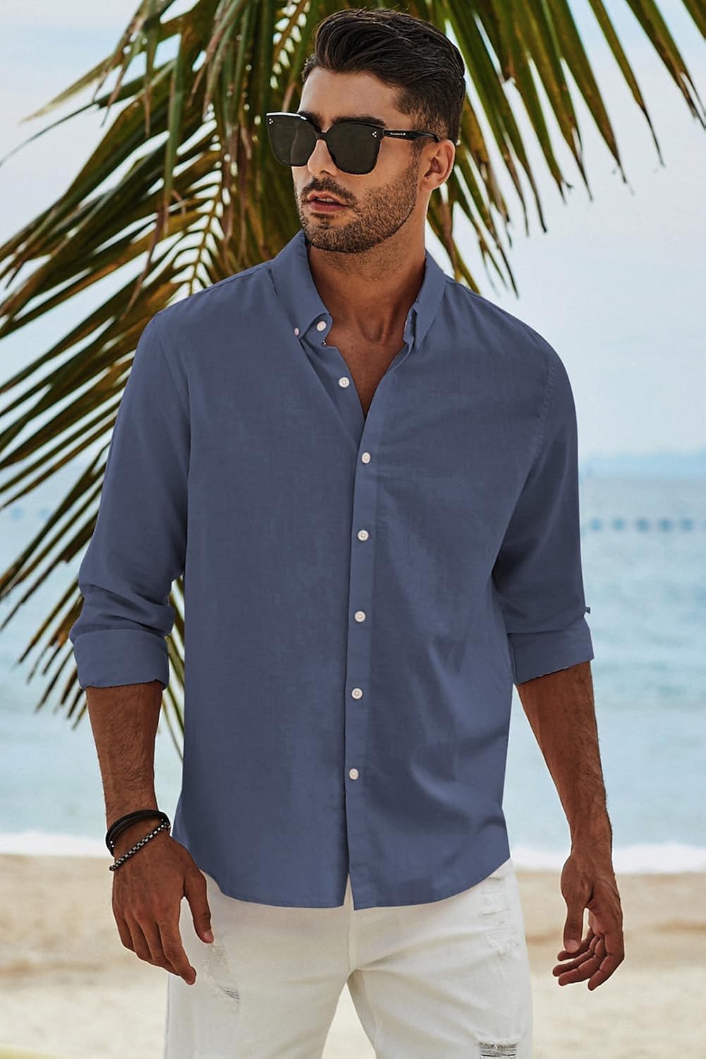 Design: Mens shirts have a classic design with a stylish look. The slim fit and casual business style give you a clean and fashionable appearance. The textured cotton linen fabric adds a touch of sophistication. These shirts are perfect gifts for your boyfriend, son, husband, or even for yourself.