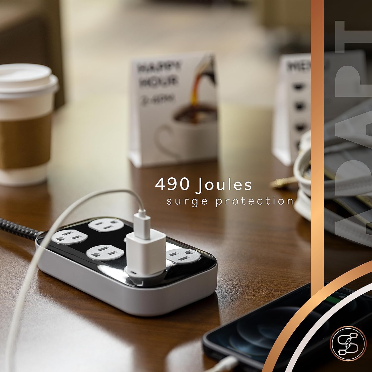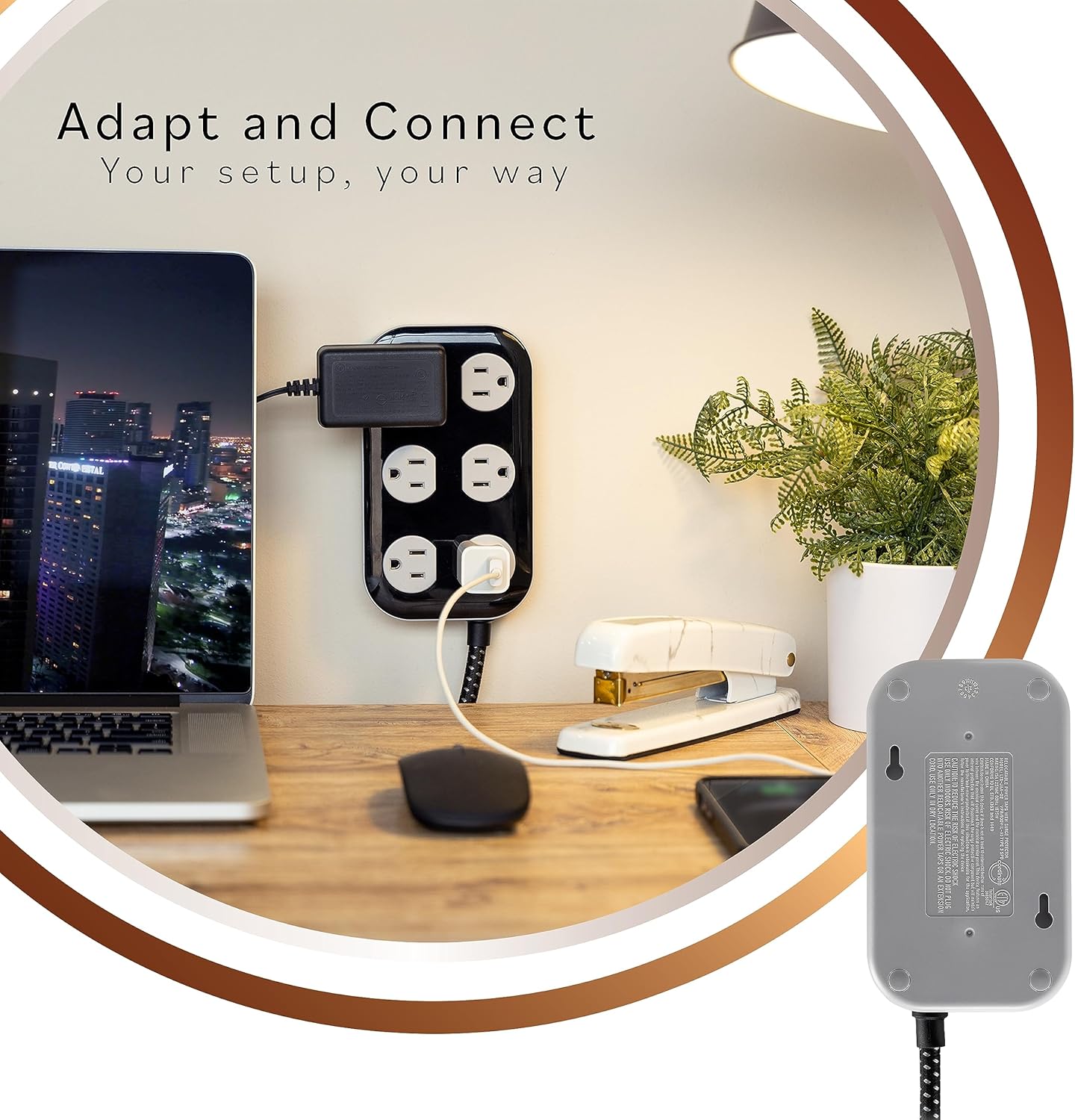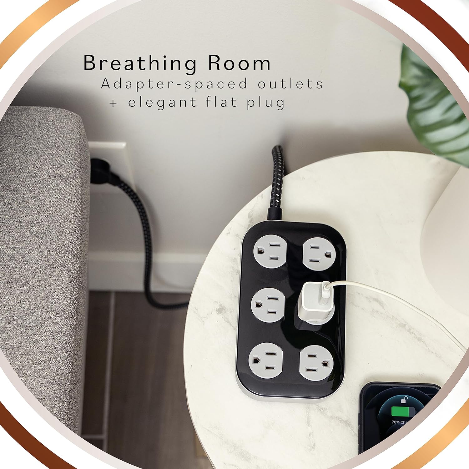 Aesthetic – The innovative design of the surge protector's unique round plug, braided fashion cord and modern industrial design is perfect for any stylish or themed home, office, business and more
