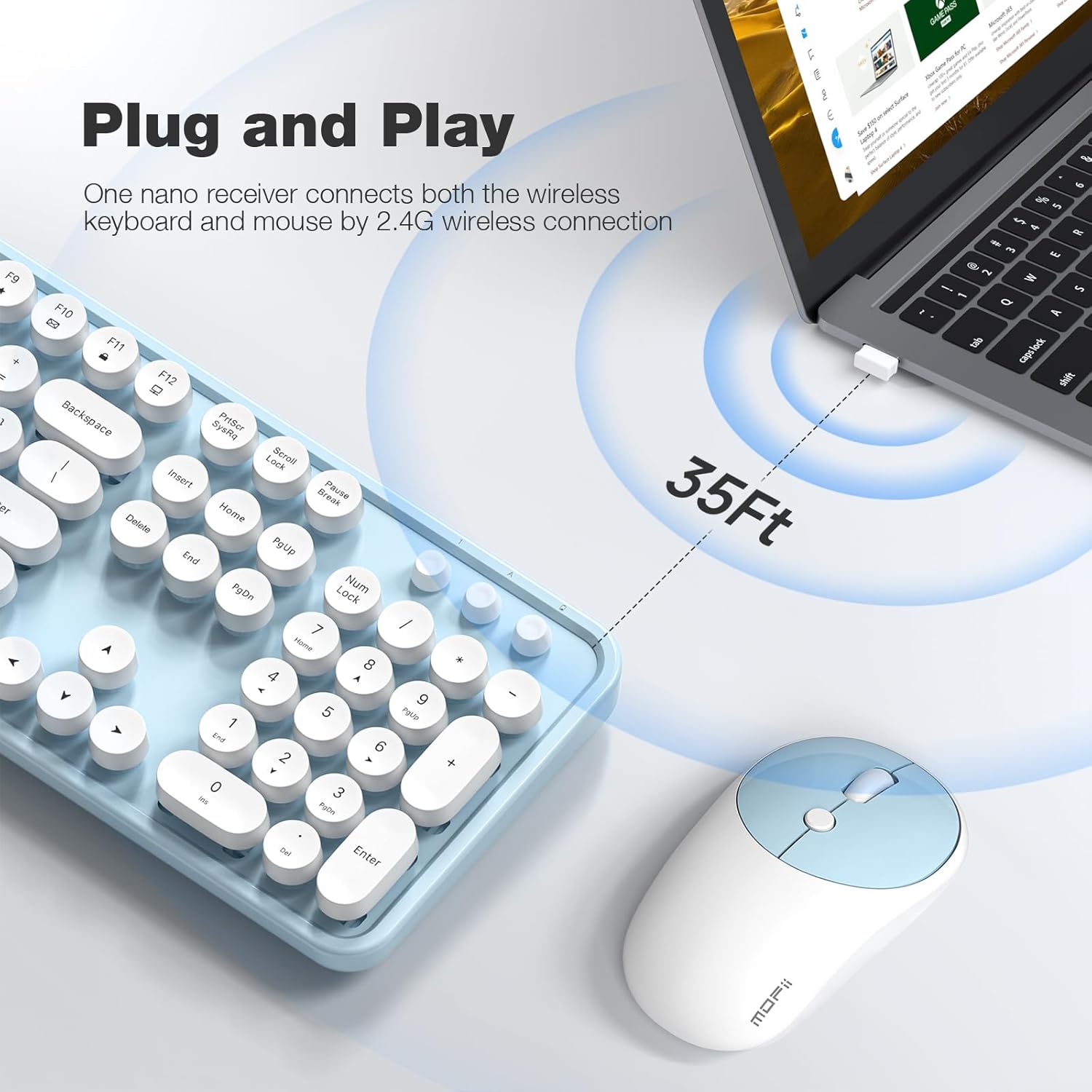【Colorful Cute Wireless Keyboard and Mouse & Best Office Gift】MOFII is committed to creating high-quality colorful wireless keyboard and mouse, perfect for office/home workers. And it is also the best choice for your friend's Birthday, Christmas or New Year gift list. Choose MOFII, you’ll enjoy enjoy 30 days money-back and 12-month worry-free warranty.