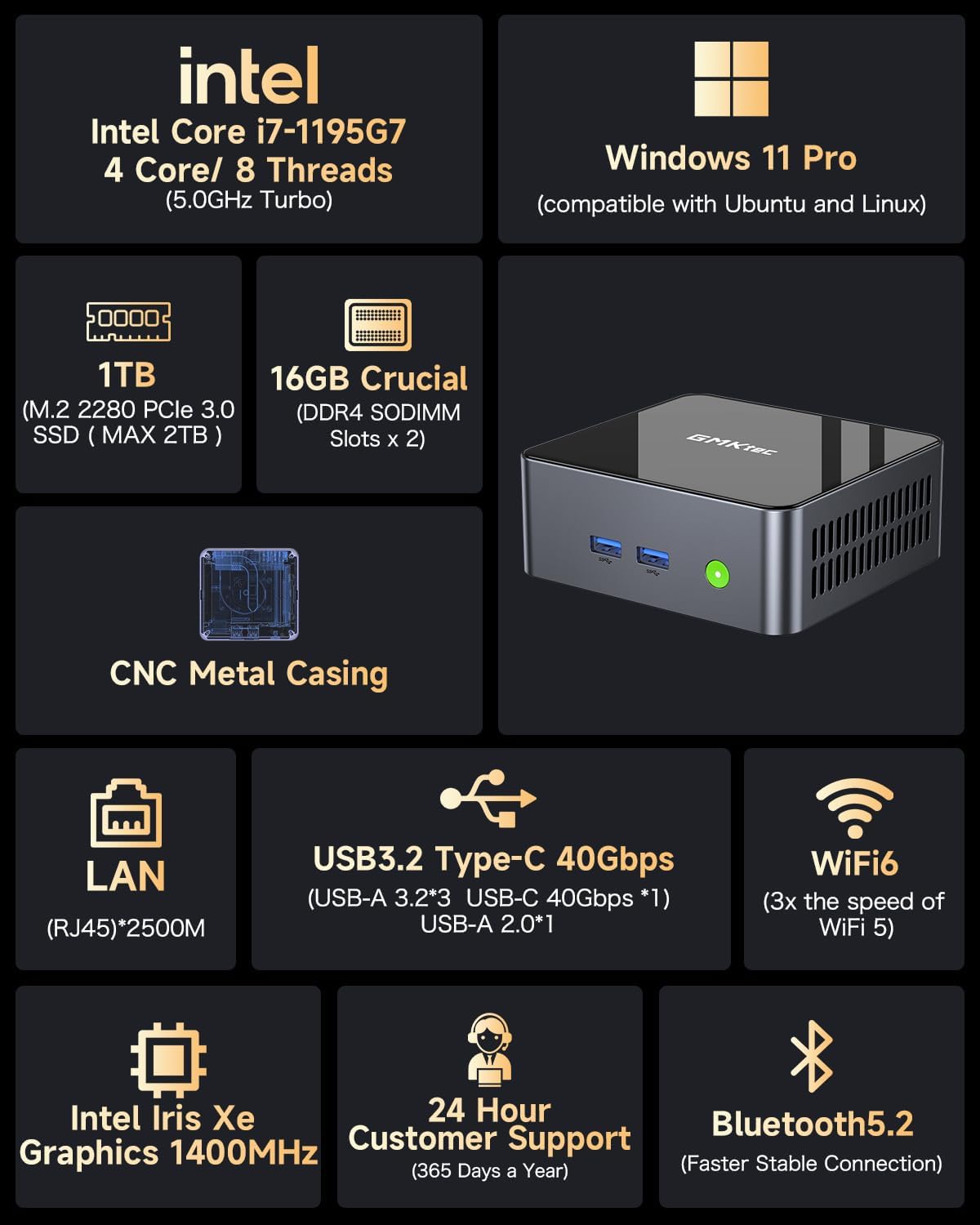 24/7 Customer Support: GMKtec Mini PC, we provide a One-Year limited and lifetime professional customer service. Please do not hesitate to contact us whenever you need pre-sale or after-sale support