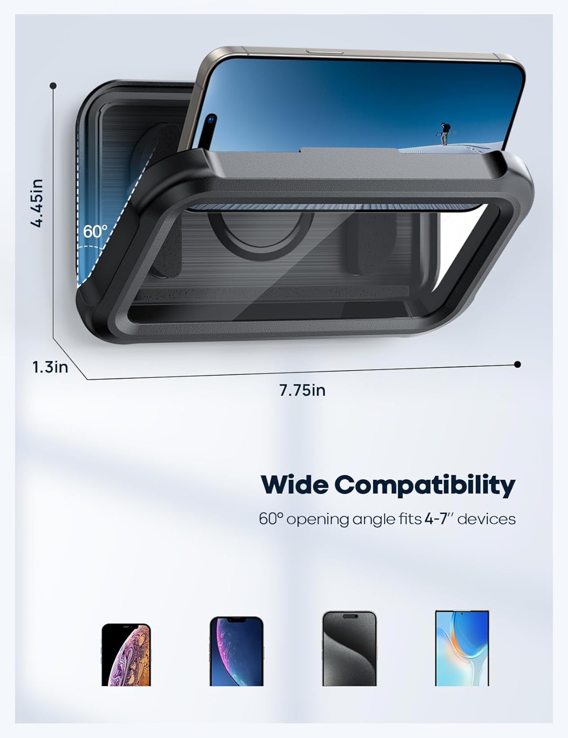 Thick Case Friendly : Designed with the interior sponge, this waterproof phone box holder is friendly to thick phone cases,ring and socket, fits cell phones from 4 to 7 inches, compatible with iPhone 16, 16 Pro, 16 Pro Max, 16 Plus, 15, 15 Pro, 15 Plus, 15 Pro Max, 14, 14 Pro, 14 Pro Max, 14 Plus, 13, 13 Pro, 13 Pro Max, 13 Mini, 12, 12 Pro, 12 Pro Max, 12 Mini, 11, 11 Pro, 11 Pro Max, XS, XS Max, XR, X, 8, SE, SE2, android and more devices